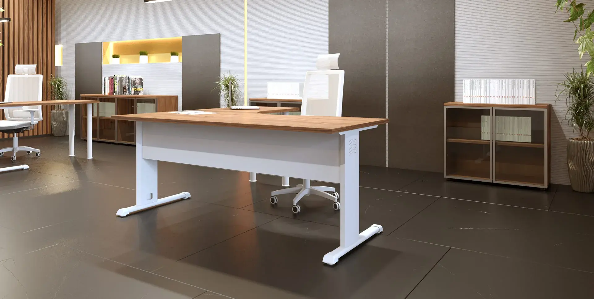 La serie HYDRA ZERO resalta por la reducción del cimbreado, debido a que las patas están formadas por una estructura de acero, que da sostenibilidad vertical a la mesa y por la unión entre patas y viga que proporcionan estabilidad en el plano horizontal.