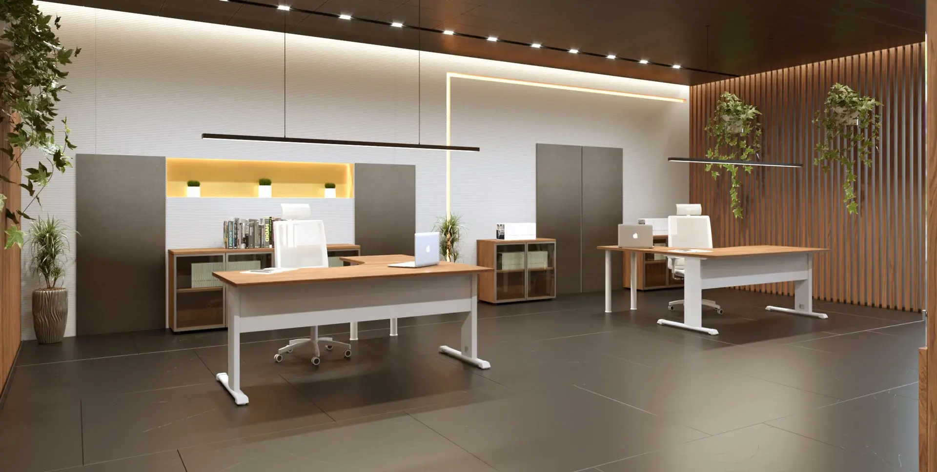 Las tapas están formadas por tablero bilaminado de 25 mm de espesor, canteado con ABS de 2 mm, disponibles en los mismos colores que el tablero y encolado con cola termofusible a 200ºC.