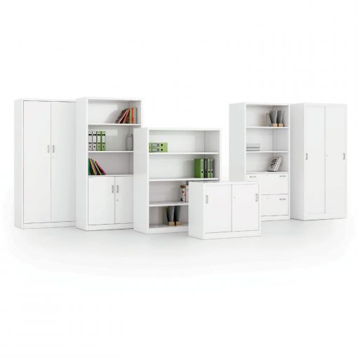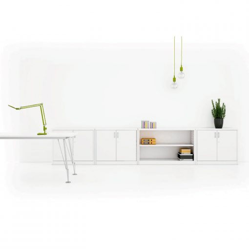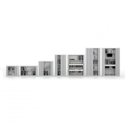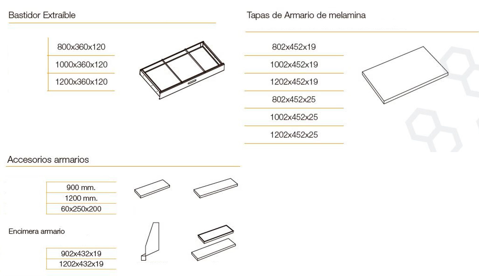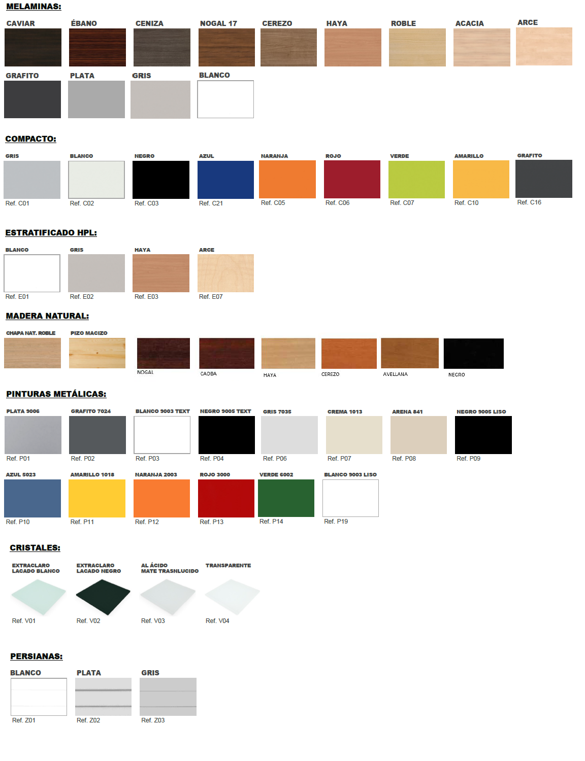 El programa de armarios combinados dispone de estantes regulables en altura mediante sistema de anclaje con cremallera, de tal manera que podemos posicionar los estantes a la altura deseada.