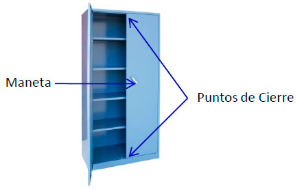 Sistema caracterizado por incorporar una maneta, para girar y cerrar el armario en los puntos superior e inferior. Dicho sistema cierra primero la hoja, denominada “pasiva”, y después la hoja que posee el sistema de cierre.