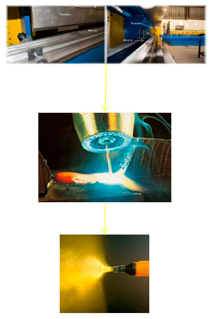 El proceso de plegado, se caracteriza por un redondeo que mata las aristas vivas y da suavidad al tacto. El proceso se lleva a cabo a altas presiones para evitar la recuperación elástica del metal.
