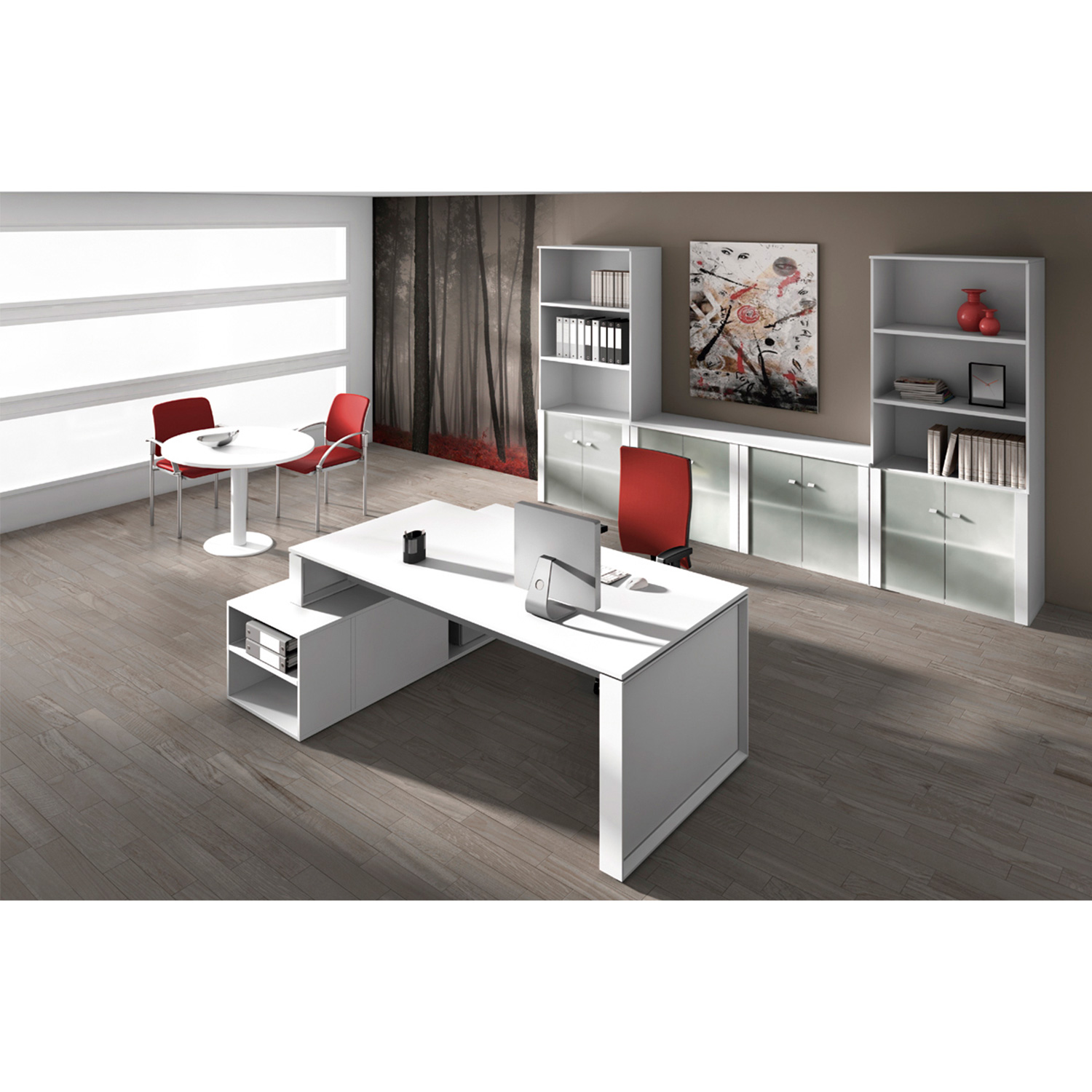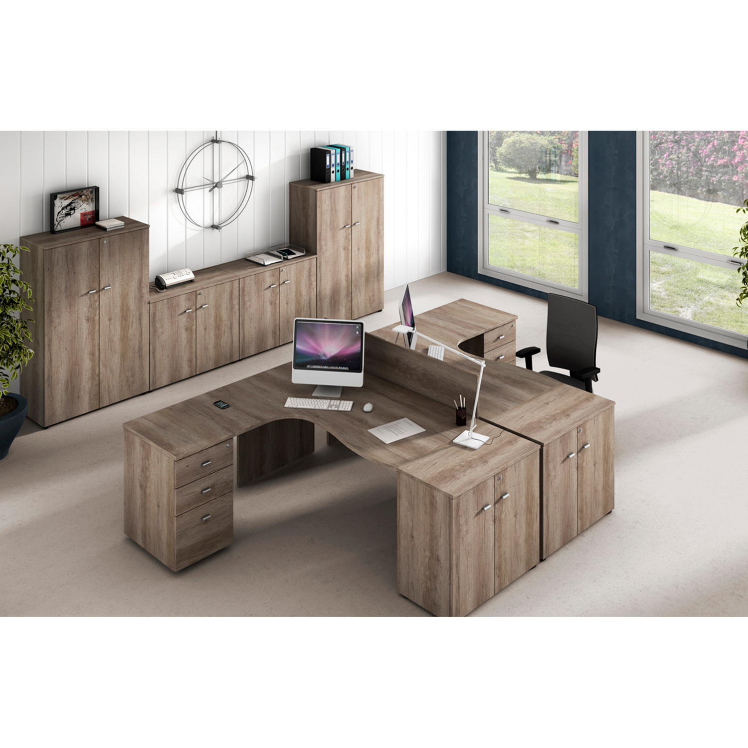 El sistema kit de archivadores se compone de 2 archivadores metálicos portacarpetas modulables para varios tipos de carpetas , gracias a los soportes metálicos incorporados. Con sistema antivuelco pero sin cierre centralizado (el cierre lo realiza la cerradura de las puertas batientes), las guías metálicas son de rodillos recubiertos con material plástico para amortiguar ruidos y con freno stop control para evitar golpes debidos a