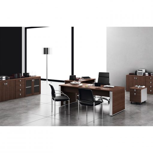 Se realizan con panel de partículas aglomeradas revestido por ambos lados con papel decorativo impregnado en resinas melamínicas en 19mm grosor. Canteado con PVC de 1mm de espesor y radio 1mm. El frontis superior lleva incorporado el sistema de cerradura, provisto con llave abisagrada para evitar roturas + llave de repuesto. El sistema kit de archivadores se compone de 2 archivadores metálicos portacarpetas modulables para varios tipos de carpetas , gracias a los soportes metálicos incorporados. Con sistema de cierre centralizado y sistema antivuelco,