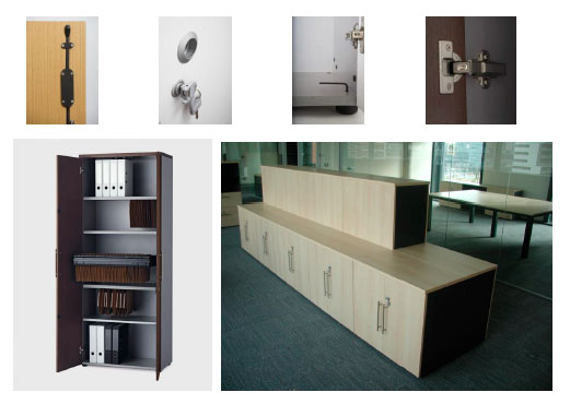 Estantes de doble uso para documentos y carpetas colgantes, bastidores fijos y extensibles telescópicos, estante cintero, estante varillas y perchero. Sistema de electrificación y estante teclado extensible.