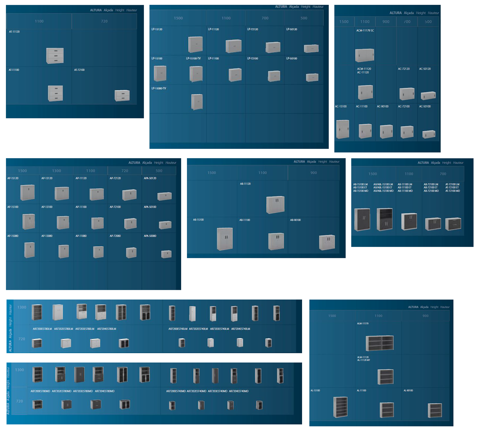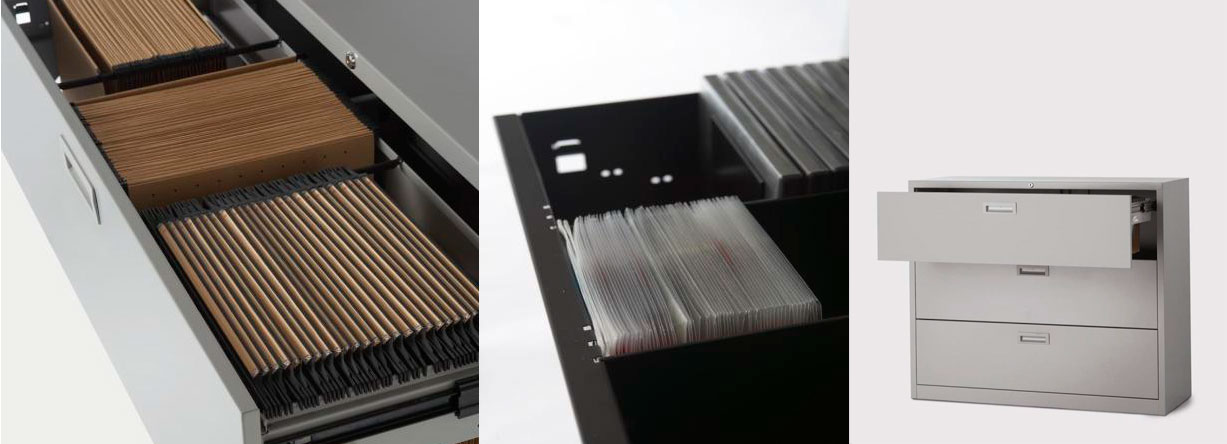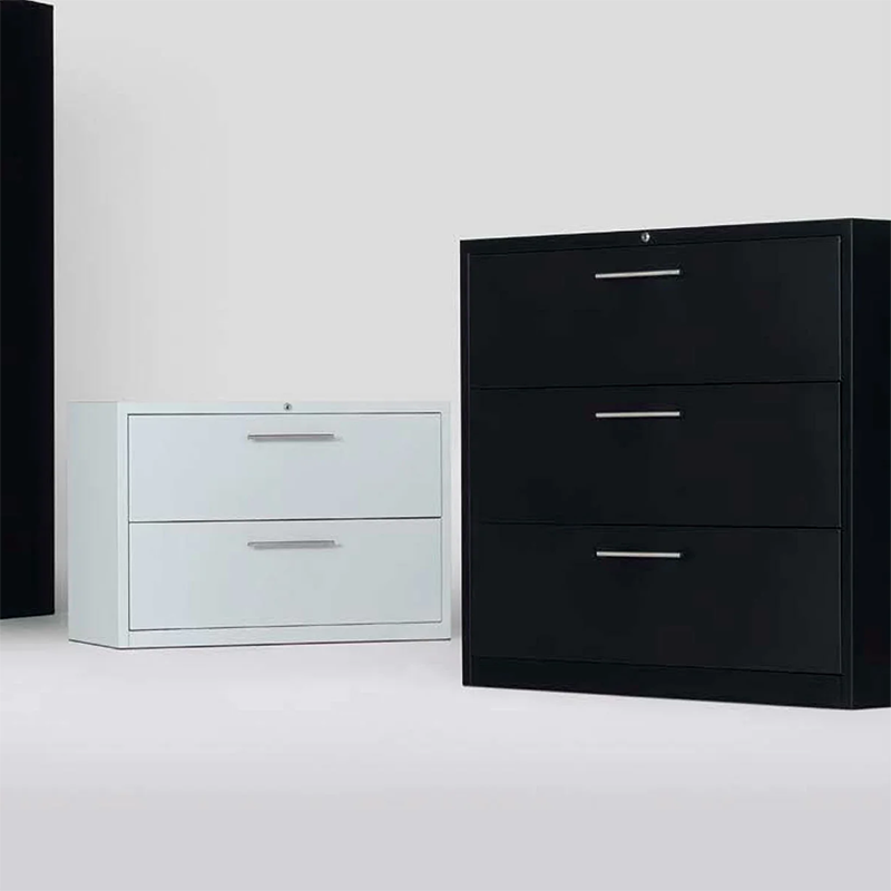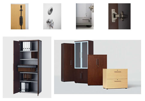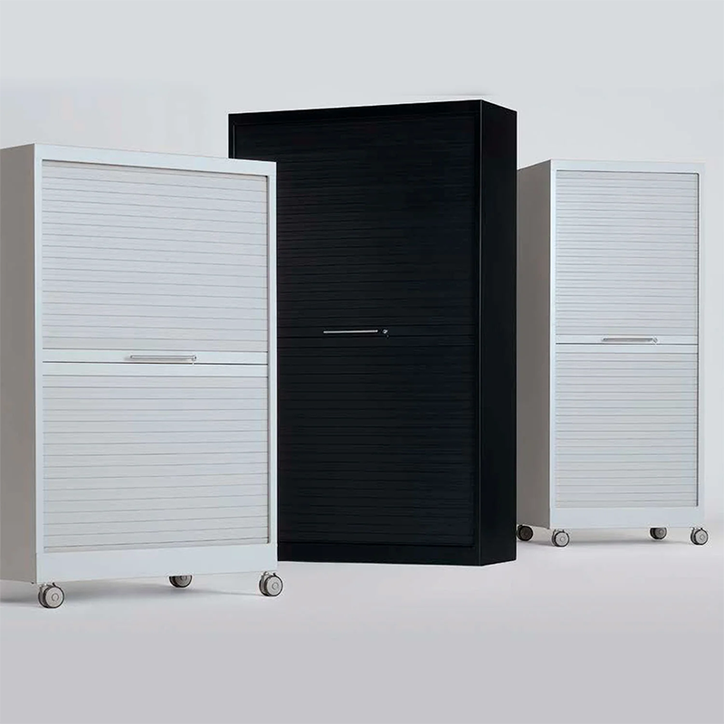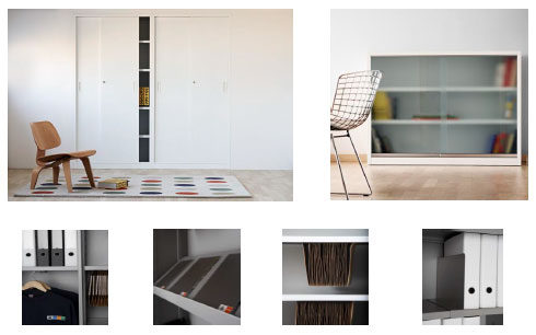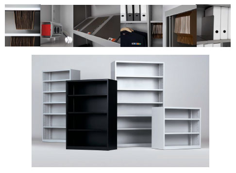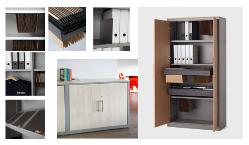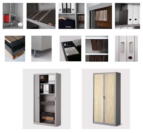 Los laterales de los armarios incorporan una guía perforada que permite situar los estantes y accesorios a la altura deseada, ofreciendo una amplia capacidad de archivo.