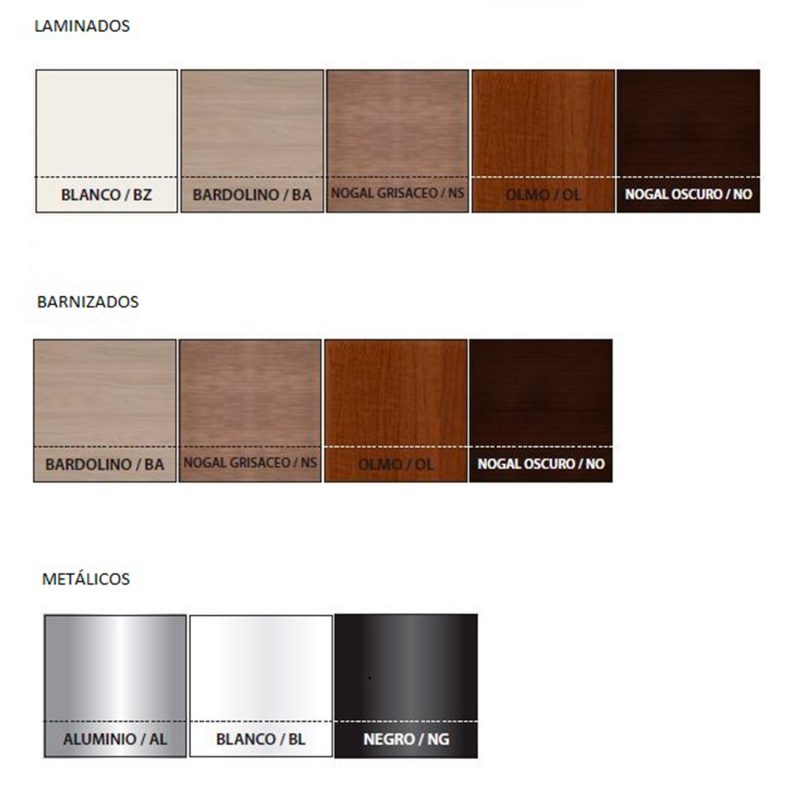 ENCIMERA LAMINADAS Y BARNIZADAS: Las encimeras están fabricadas con material M.D.F. 28 mm grosor con papel decorativo impregnado en resinas melamínicas de color gris en su cara inferior (no vista) y con laminado sintético en la cara superior (superficie de trabajo). Cantos redondeados y postformados.
