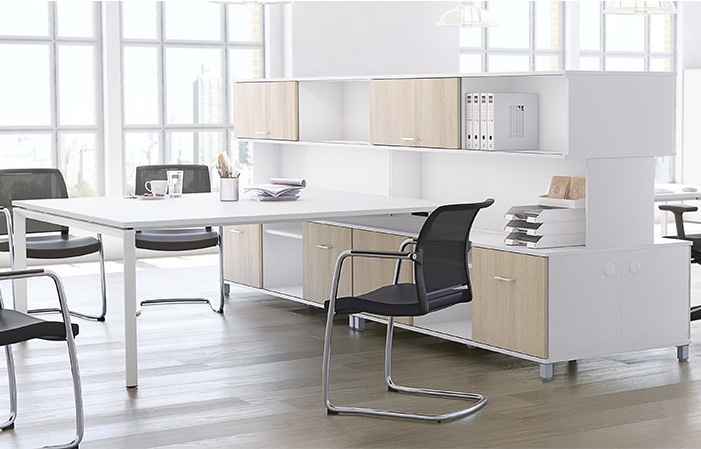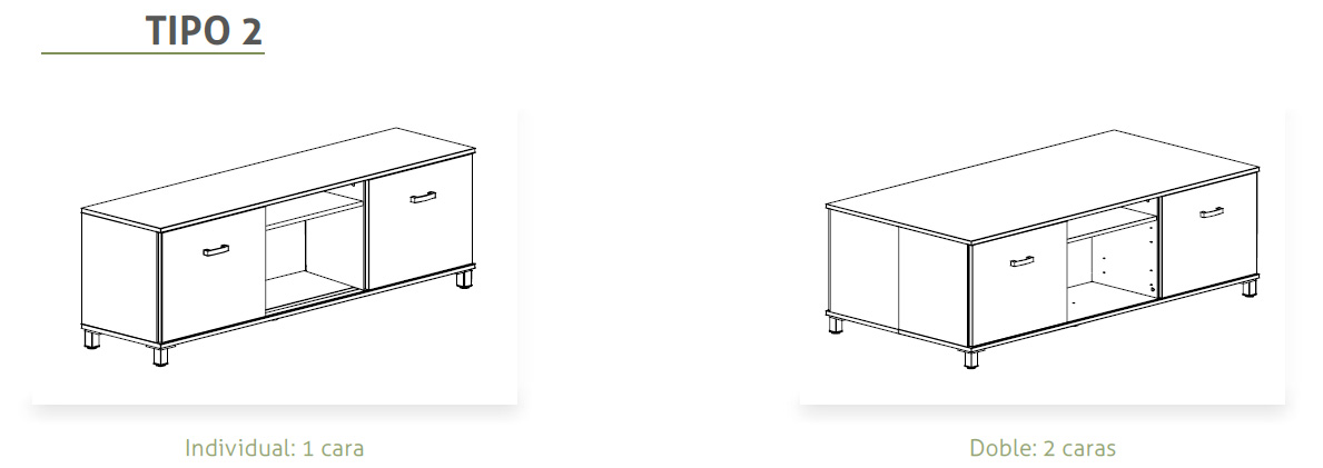 Fabricado en melamina de 19 mm con canto de 0,8 y 2 mm. Acabados: grafito, plata, blanco, gris, haya, roble, peral, wengue, acacia clara, acacia oscura o zebrano.