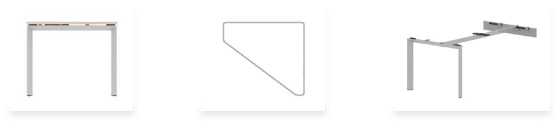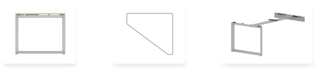 Realizados con perfiles de acero DD11 conformados en frío de forma triangular de sección 50 x 50 con grosor 1,8 mm. Conteras de ABS en la parte inferior del lateral para la ubicación de los niveladores con rosca M8 y altura útil de 2 cm.