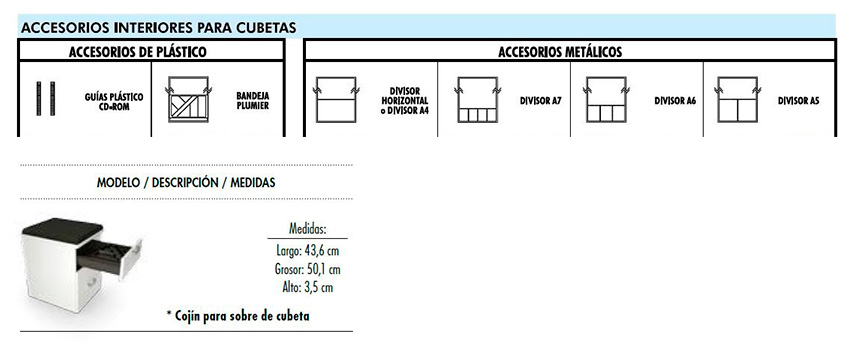 Fabricados en chapa de acero de 0,8 mm. de espesor, perforada en la parte lateral para anclaje de separadores de cajón.