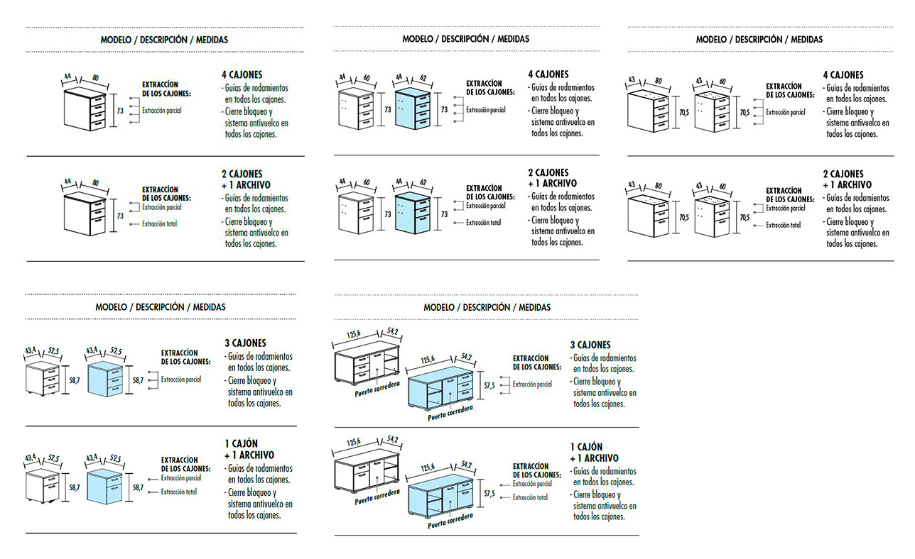 Sistema antivuelco y sistema de cierre simultaneo en todos los cajones.