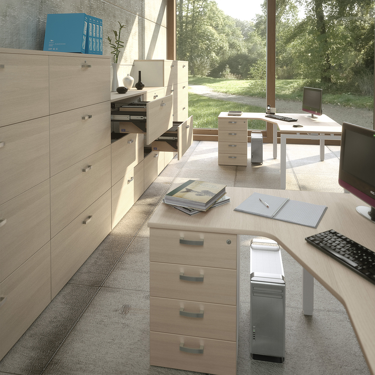 Gran variedad de acabados: blanco, plata, gris, haya, roble, peral, wengué, grafito, acacia clara, acacia oscura y zebrano.