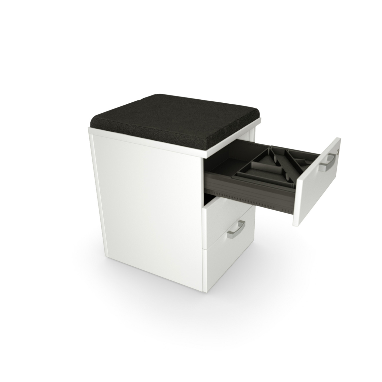 El las cubetas con cajón archivo incluye una rueda delantera extra para soportar mejor el peso a que se someten las guías.