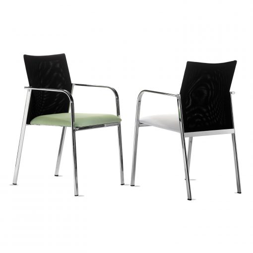Igual asiento y respaldo de tubo de acero de 18 mm recubierto de gomaespuma para una mejor adaptación ergonómica, y mallas en diferentes colores a elegir.