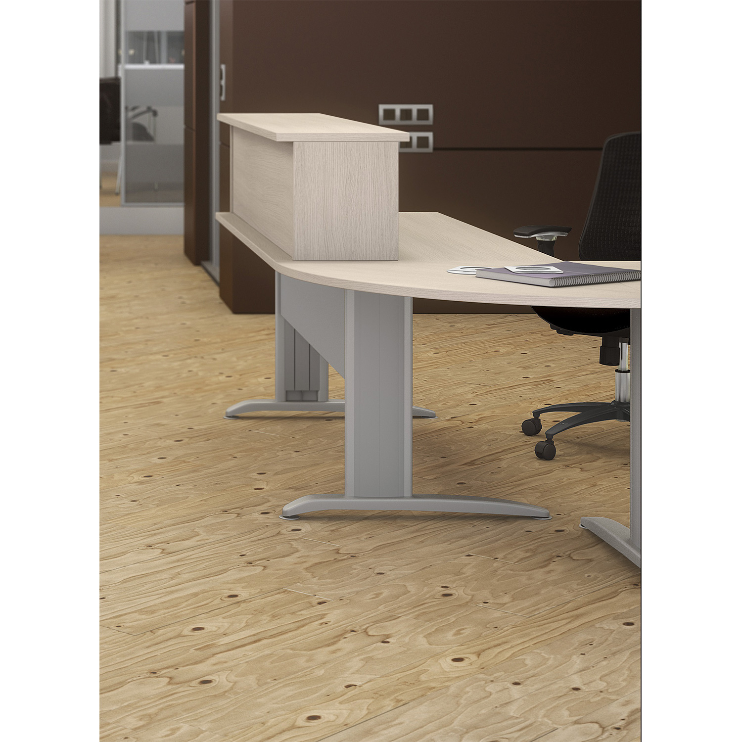 El núcleo del sobre y bajo están fabricados con tablero innovus con certificación IPPC de 25 mm de espesor con recubierto melamínico de 120 grs/m2 por ambas caras y una densidad de 630 ± 5 kg/m3. El grado de inflamabilidad según la norma EN 13501-1 es d0. Según la norma UNE-EN 120 en emisión de formaldehidos su valor es de E1. También dispone de certificado PEFC. Cumplen la norma UNE 89401-2:2008 que garantizan la degradación por efecto de la luz o de su uso.