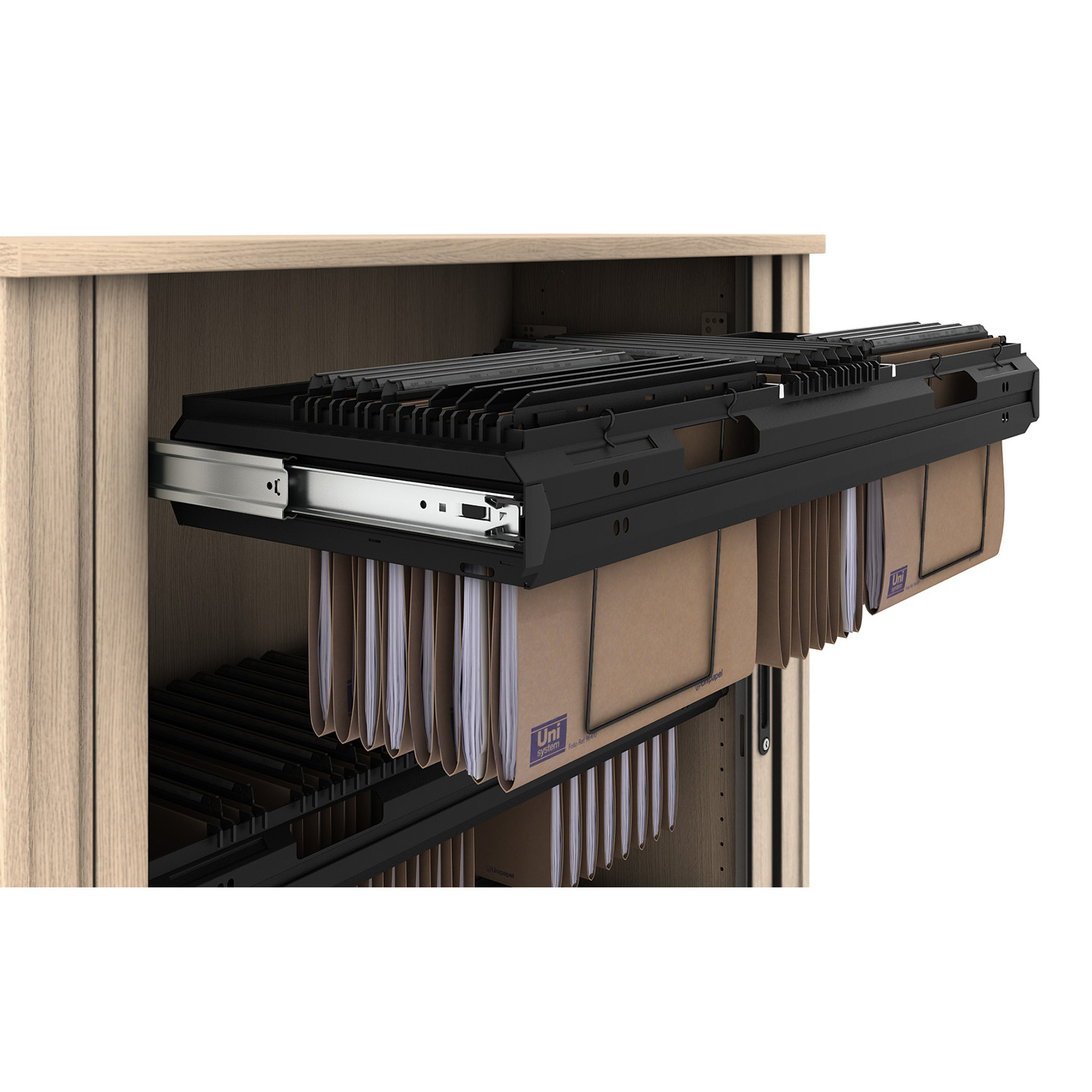 En todos los estantes incluye en la parte inferior un soporte para carpetas A4 fijas.