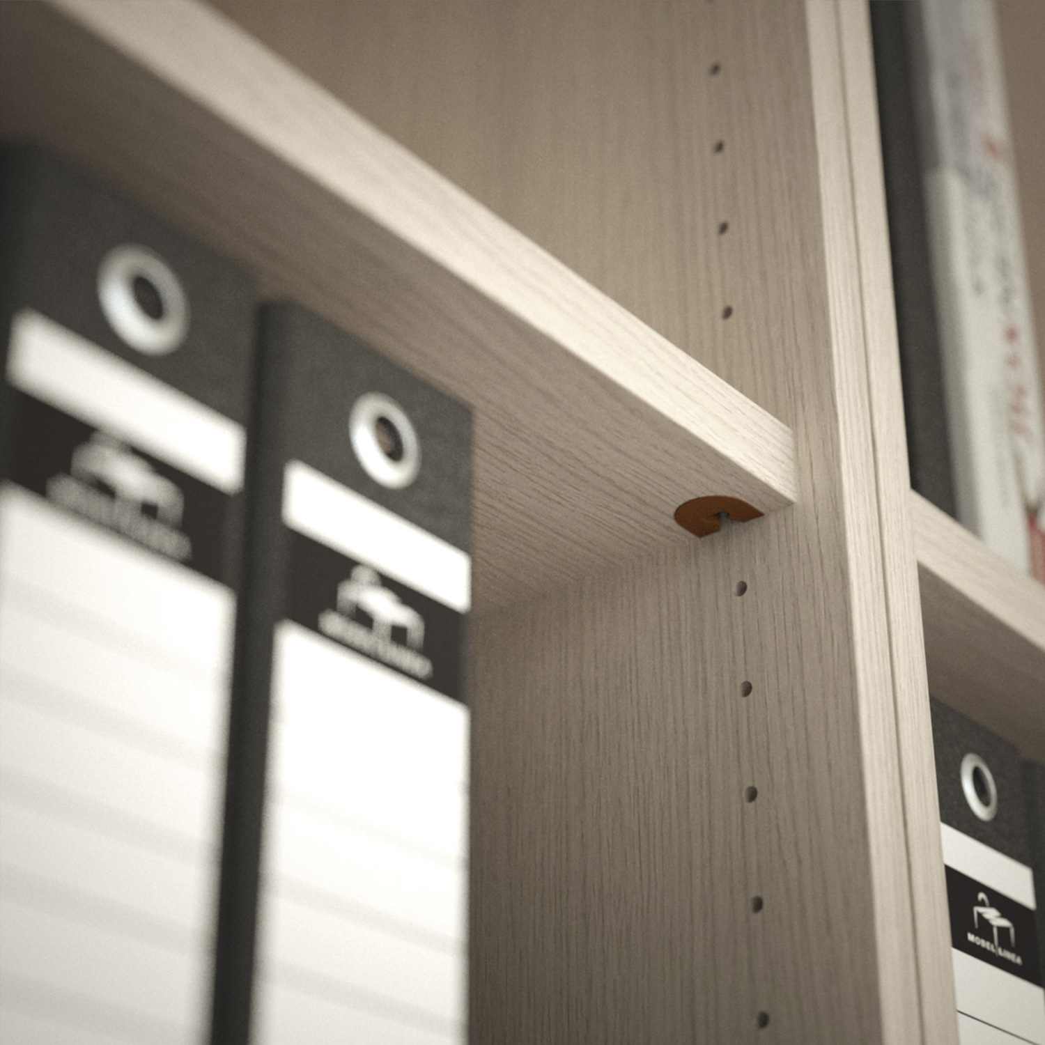 Los bajos de las librerías incluyen 4 niveladores de polipropileno para una mejor asentamiento en el suelo. La regulación se podrá realizar desde el interior de la librería.