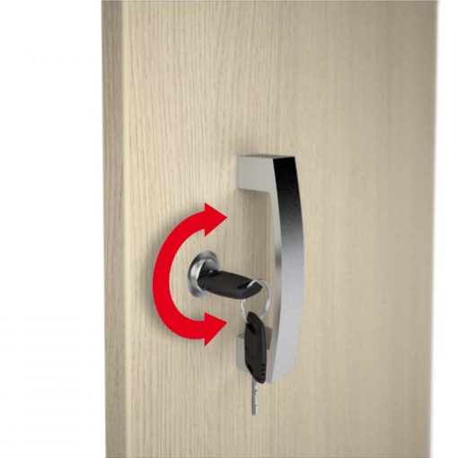 Para una mayor versatilidad incluye sistema de cierre de falleba estándar, con la posibilidad de bombines amaestrados y llaves iguales en acabado plata (ral 9006). Varillas interiores cincadas blanco. Tipo de apertura de 110º.