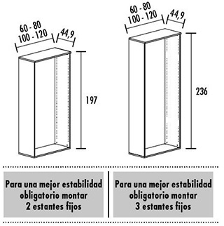 Incluye sistema de mecanización 32 (contiene un mecanizado interior para el anclaje de los estantes que nos permite su desplazamiento de 32 mm en 32 mm.)