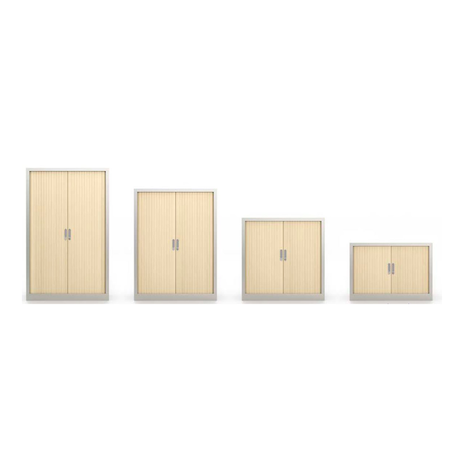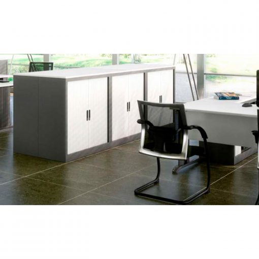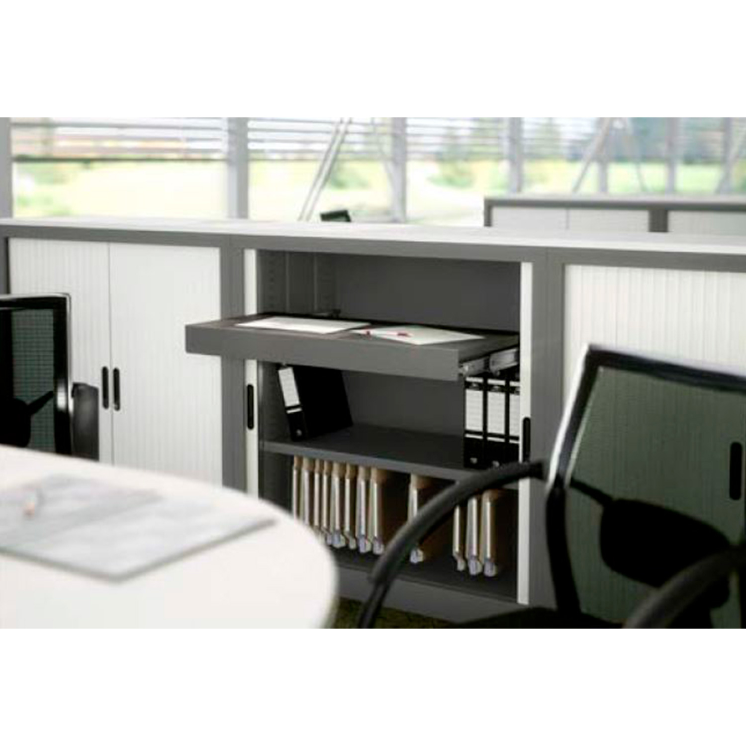 Estantes fijos fabricados en chapo laminado en frío de 0,8 mm DC10, grosor del estante 29 mm. Incluye en lo parte inferior un soporte de carpetas A4 fijas.