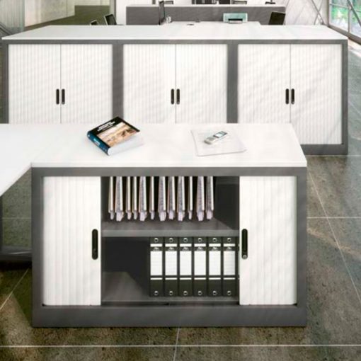 Bastidores archivos fabricados en chapa laminado en frío de 0,8y 1,2 mm montado sobre guías telescópicas de extracción total que incluyen sistema de antivuelco. Acabados en pintura epoxi negro.