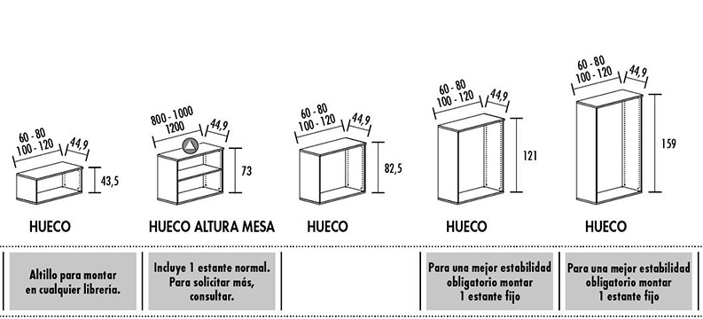 Los bajos de las librerías incluyen 4 niveladores de polipropileno para una mejor asentamiento en el suelo. La regulación se podrá realizar desde el interior de la librería.