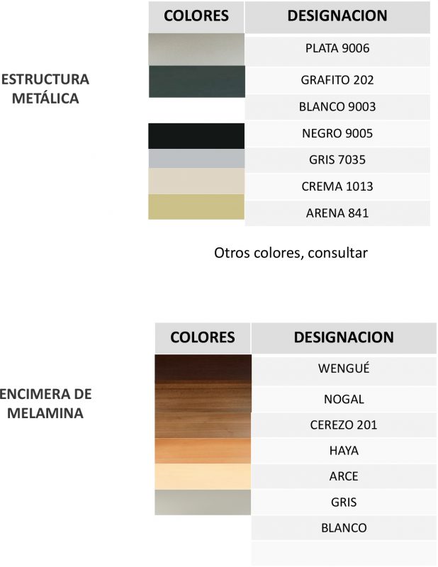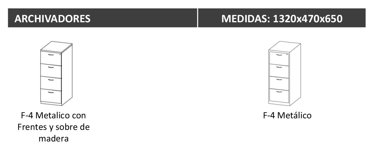 Los frontales y el sobre del archivador pueden ser metálicos ó de madera bilaminada.
