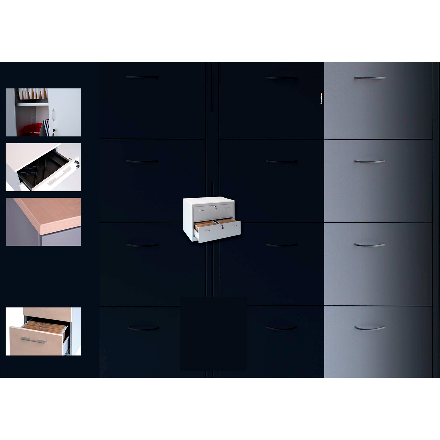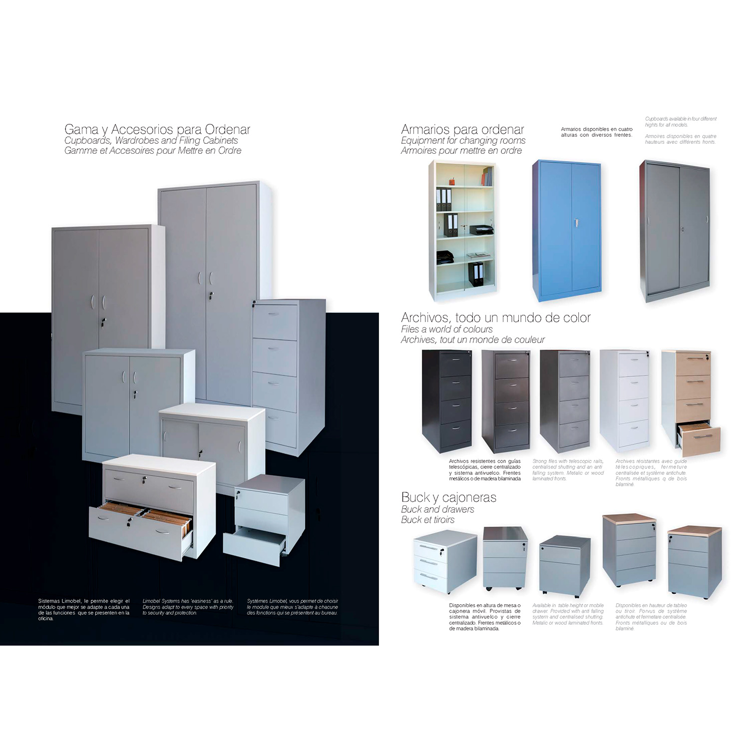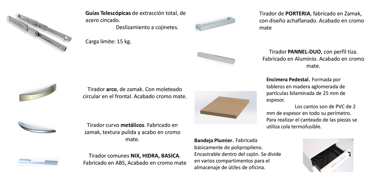Los frontales y el sobre del archivador pueden ser metálicos ó de madera bilaminada.