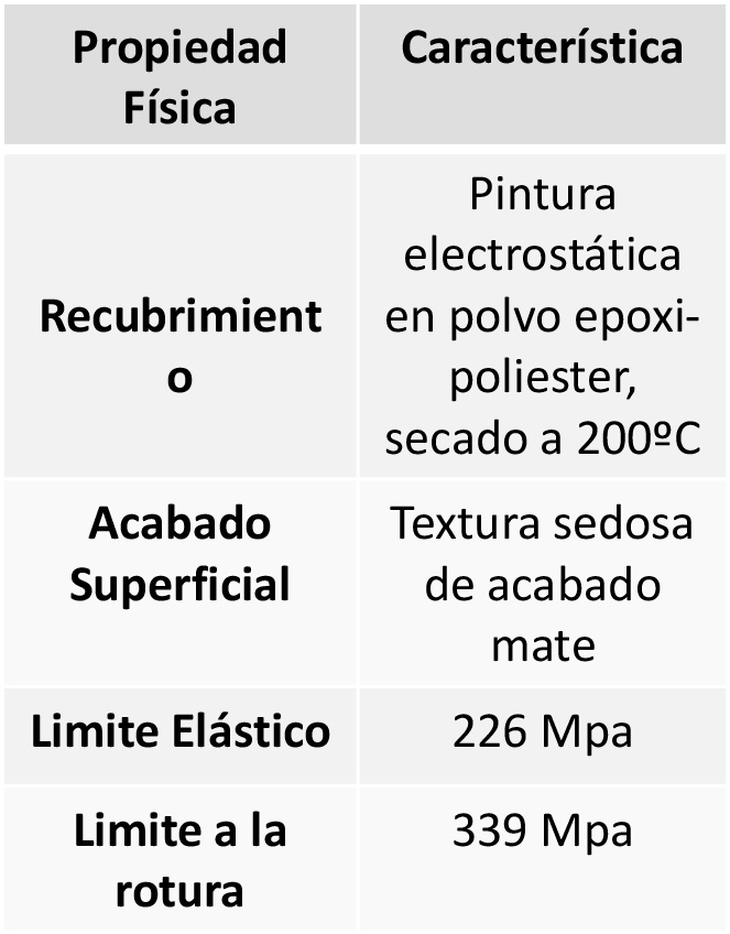 Estructura metálica o cuerpo, recubierta con pintura epoxi de secado al horno, y provista de regulación interior. Soldadas con soldaduras de resistencia eléctrica, en su modalidad de hilo continuo, lo que confiere una gran robustez.