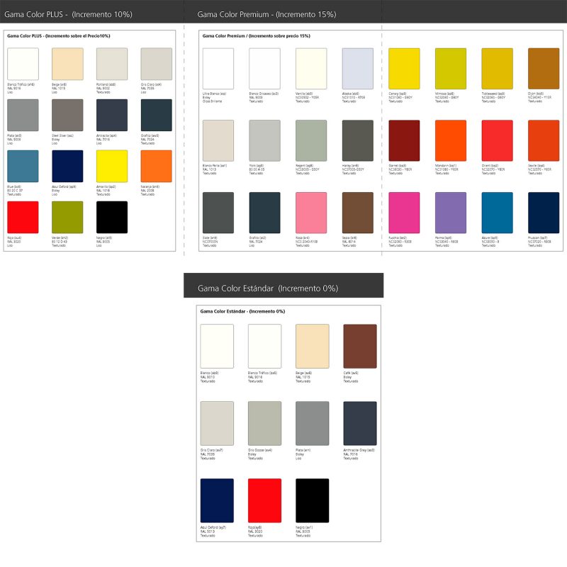 4. Gama de colores para producto estándar