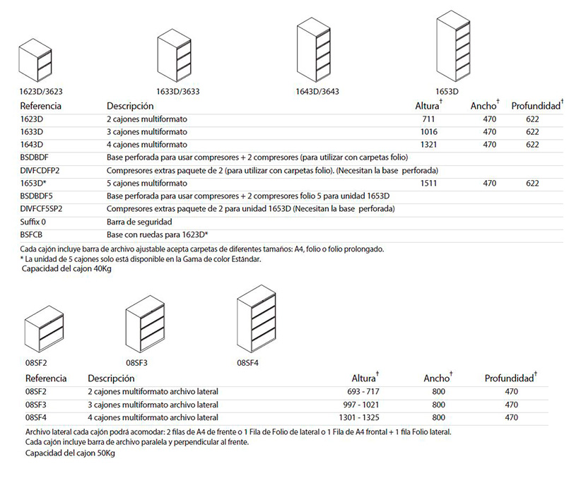 Producto ideal para el archivo de carpetas colgantes, al que se consulta con frecuencia en el contexto de un uso individual o colectivo. Maximiza la capacidad de archivo ya que ofrece un 30% adicional de capacidad para archivar. La apertura del cajón de 440 mm es ideal cuando el espacio es limitado.