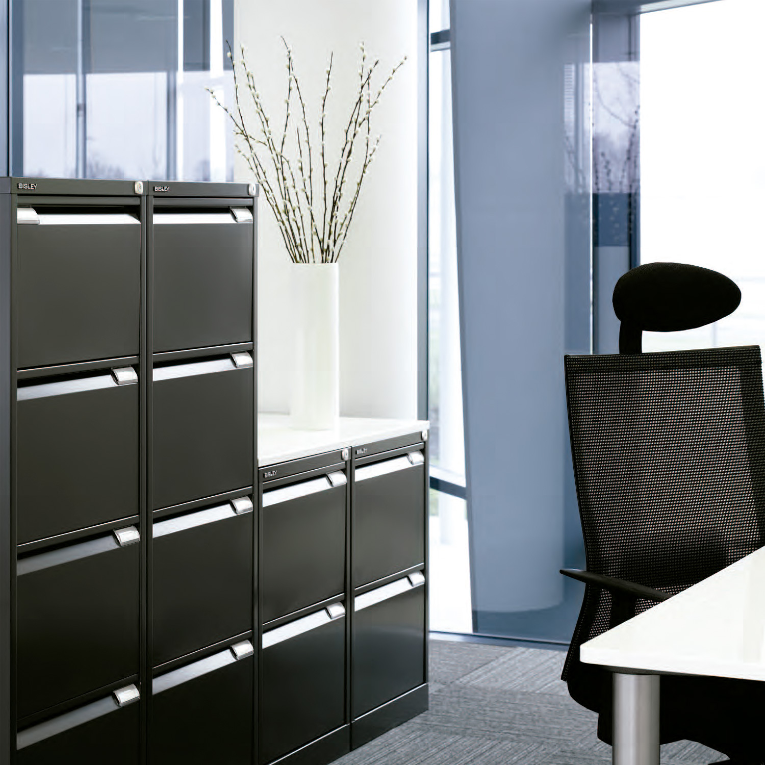 Funcional y competitivo tienen la mayor parte de los beneficios de la serie alta Bisley, ofrecen una oferta técnica simplificada a un precio muy competitivo. Se caracteriza por que incluye barra de archivo ajustable para utilizar carpetas colgantes de diferentes formatos, su seguridad, la extensión 100% del cajón, la calidad de sus guías que suaviza la apertura y el cierre al igual que la increíble calidad de su antivuelco.