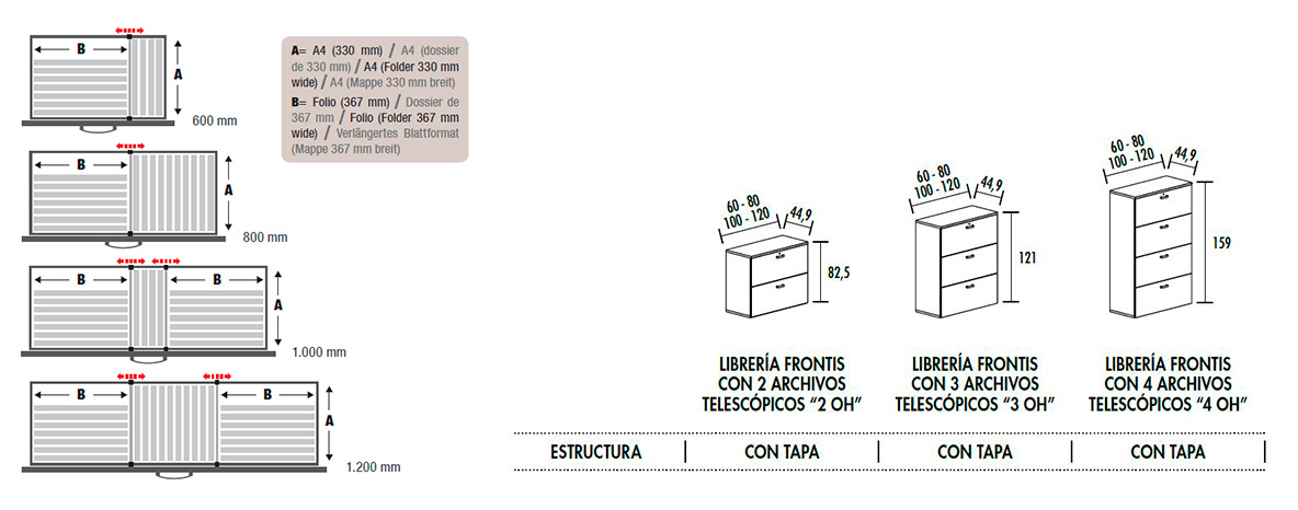Los bajos de las librerías incluyen 4 niveladores de polipropileno para una mejor asentamiento en el suelo. La regulación se podrá realizar desde el interior de la librería.