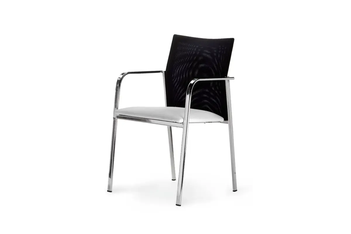 Los brazos soldados con el tubo que confieren la estabilidad a la silla, surgen de los laterales sin romper la estética y creando una pieza con formas anatómicas.