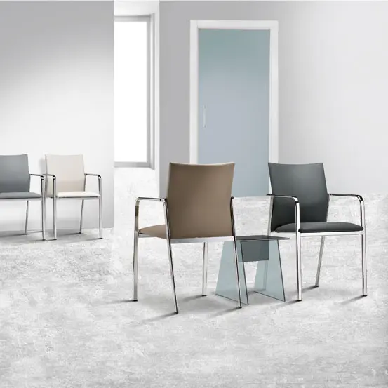 Silla de colectividades de estética equilibrada y simple. Su versatilidad permite equiparar ambientes muy diversos.