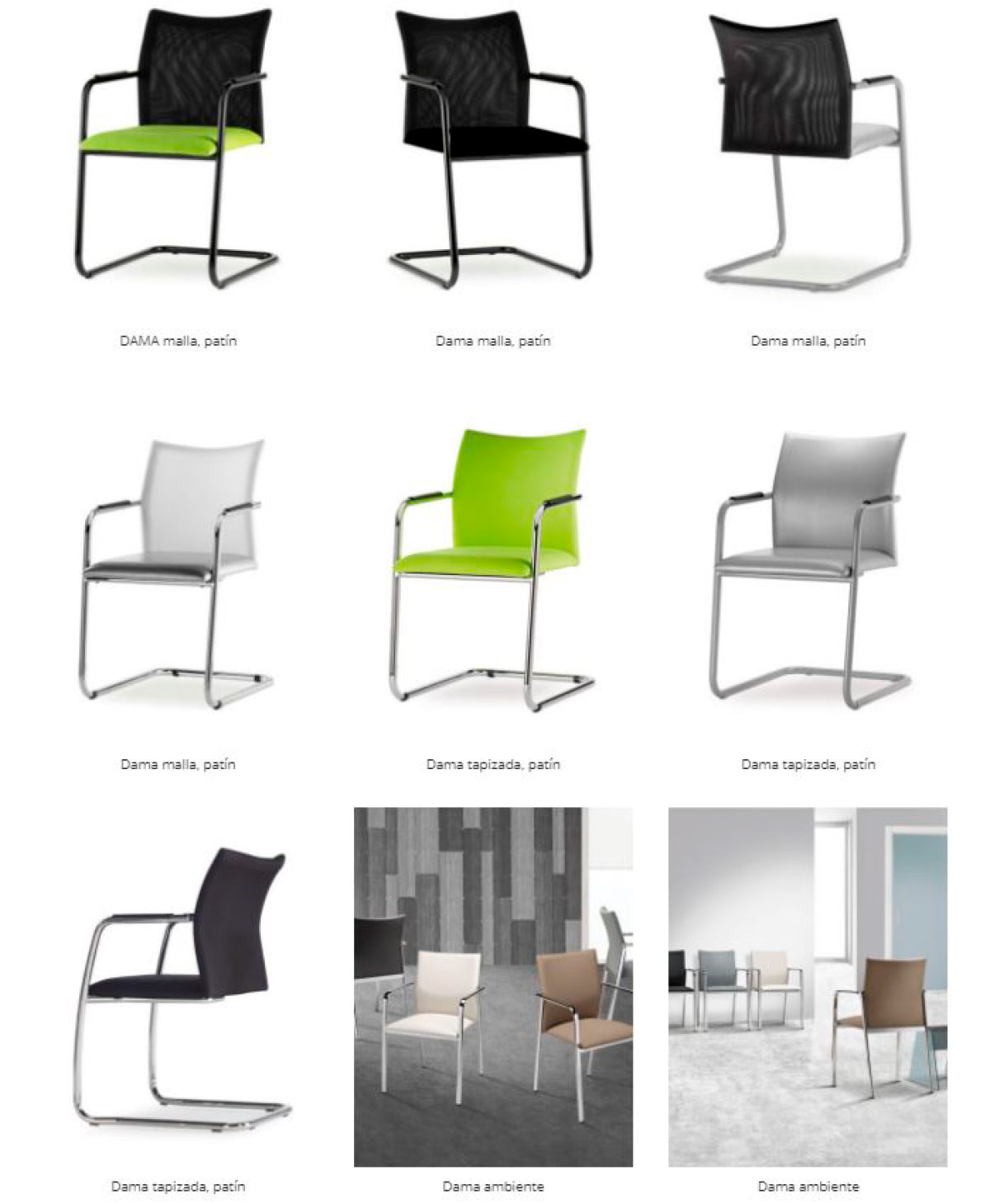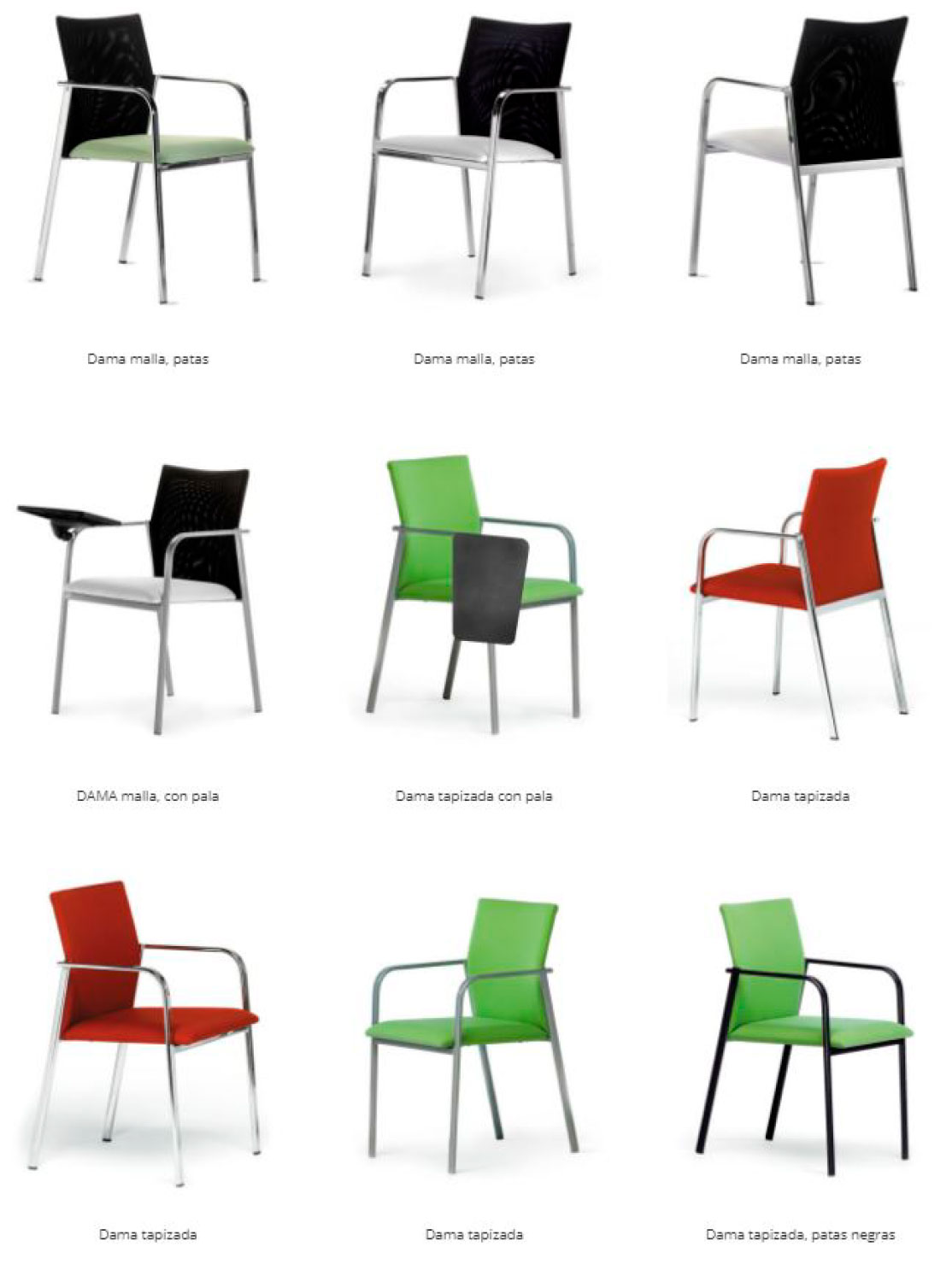 Igual asiento y respaldo de tubo de acero de 18 mm recubierto de gomaespuma para una mejor adaptación ergonómica, y mallas en diferentes colores a elegir.