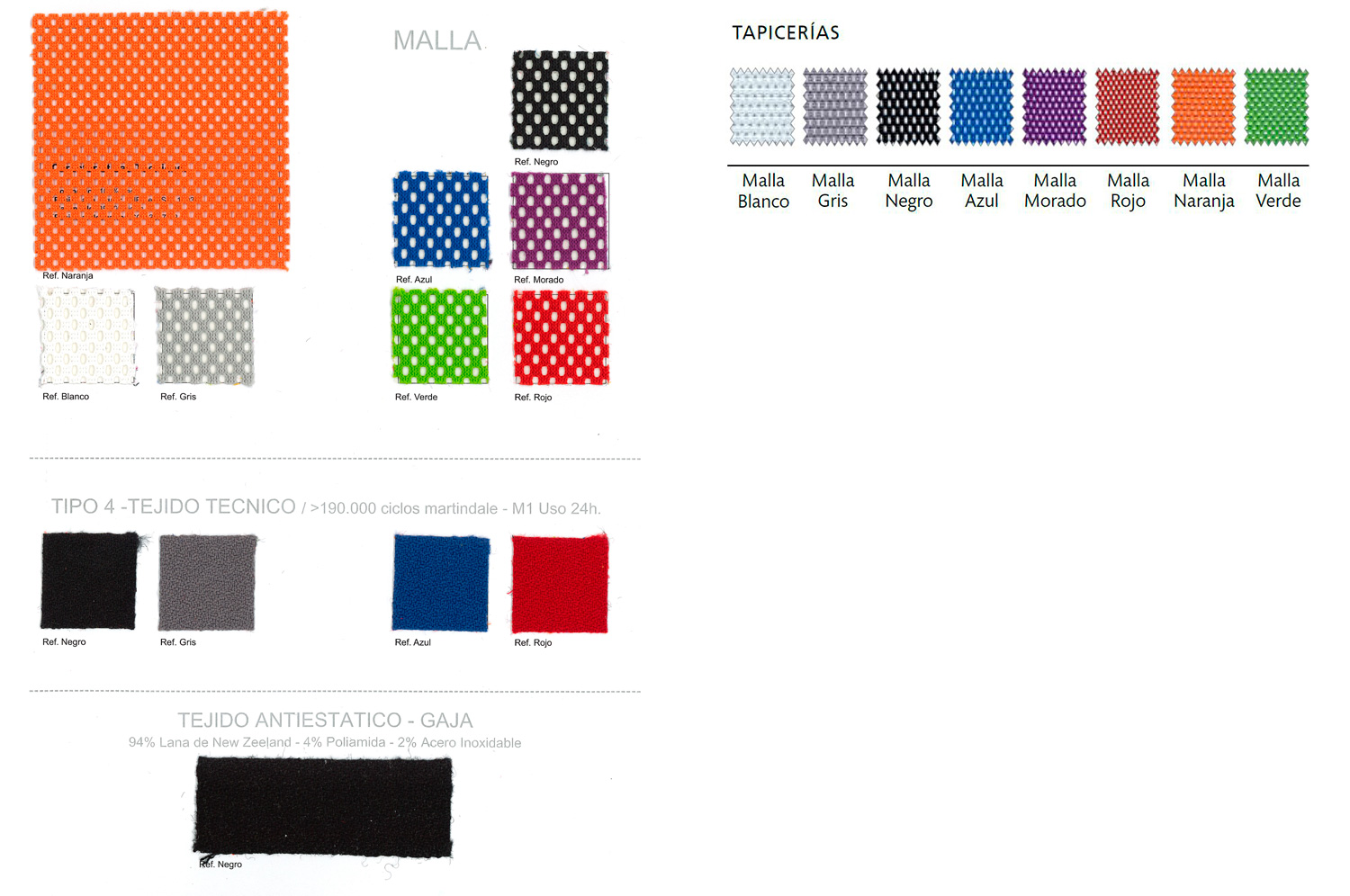 Disponibles 6 categorías de tejidos según nuestro muestrario de telas en vigor.