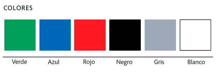 Verde, azul, rojo, negro, gris y blanco.