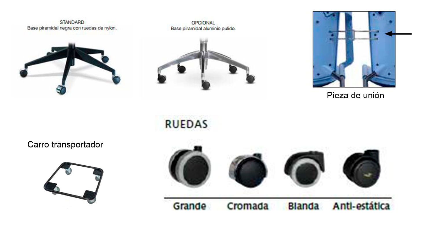 Asiento, Respaldo y carcasa inferior del asiento.