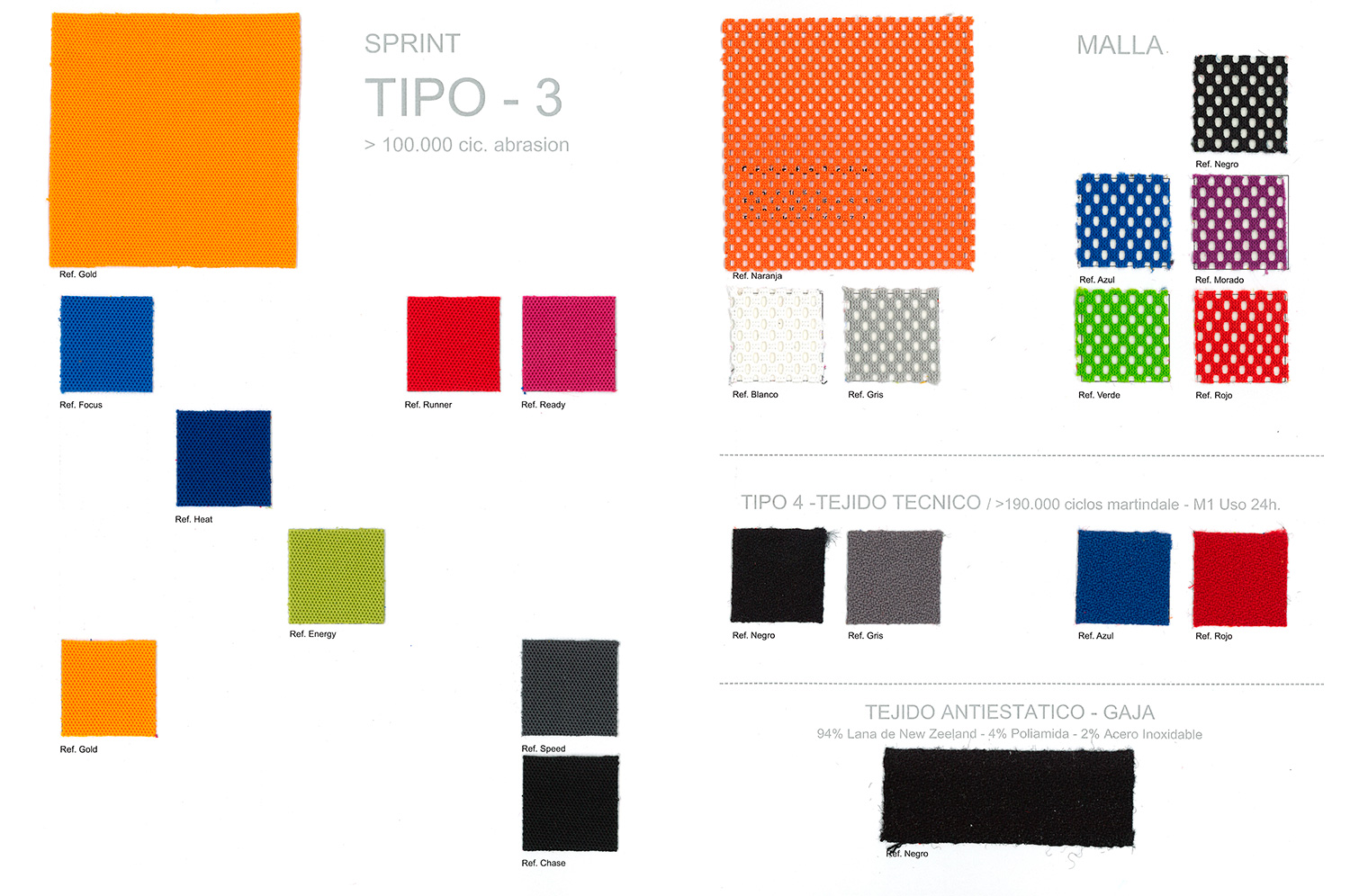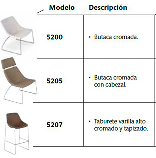 Estructura de varilla cromada, asiento y respaldo de una sola pieza con curvatura ergonómica, tapizado.