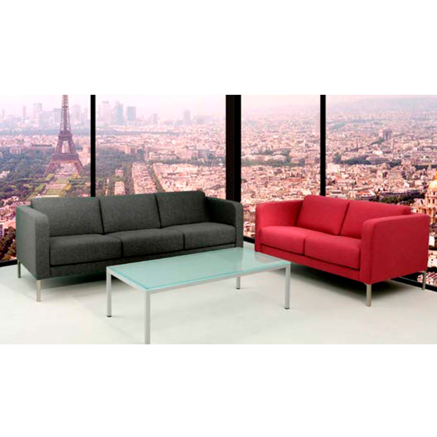Sofás de 1, 2 o 3 plazas con estructura interior fabricada en madera maciza de alta resistencia, y bastidor metálico con muelles ZIG-ZAG en asiento, independientes para cada plaza y espuma conformada de 40 kg de densidad para tapizar todo el cuerpo y brazos del sofá quedando tapizado con esmeradas costuras, sobre el que se incorporan asiento y respaldo tapizados individuales por plaza, con esmeradas costuras en platabanda y cremallera por cada cojín de asiento y de respaldo, lo que posibilita el desenfundarlos e intercambiarlos.