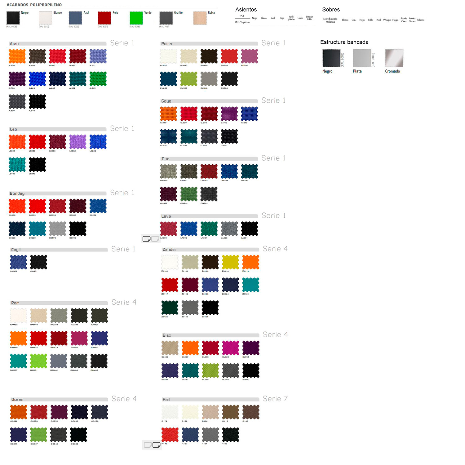 Asiento y respaldo tapizado a elegir gama de colores, carcasa exterior en PC+ABS