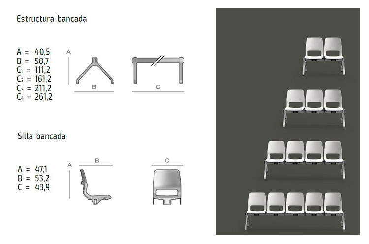 Admite combinación de elemento silla y elemento sobre en la estructura bancada.