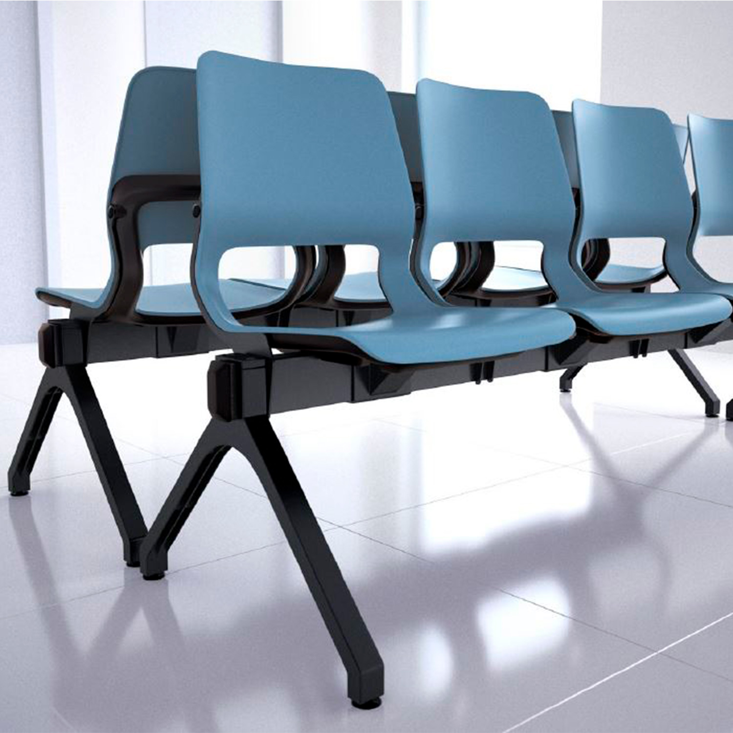 Asientos para bancadas monocarcasa exterior en acabado negro/Herraje unión con bancada de aluminio inyectado, acabado negro (ral 9005)