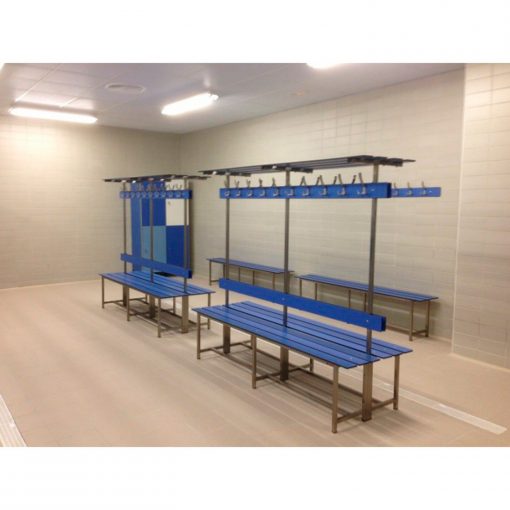 Bancos y percheros de vestuario fabricados en fenólico.