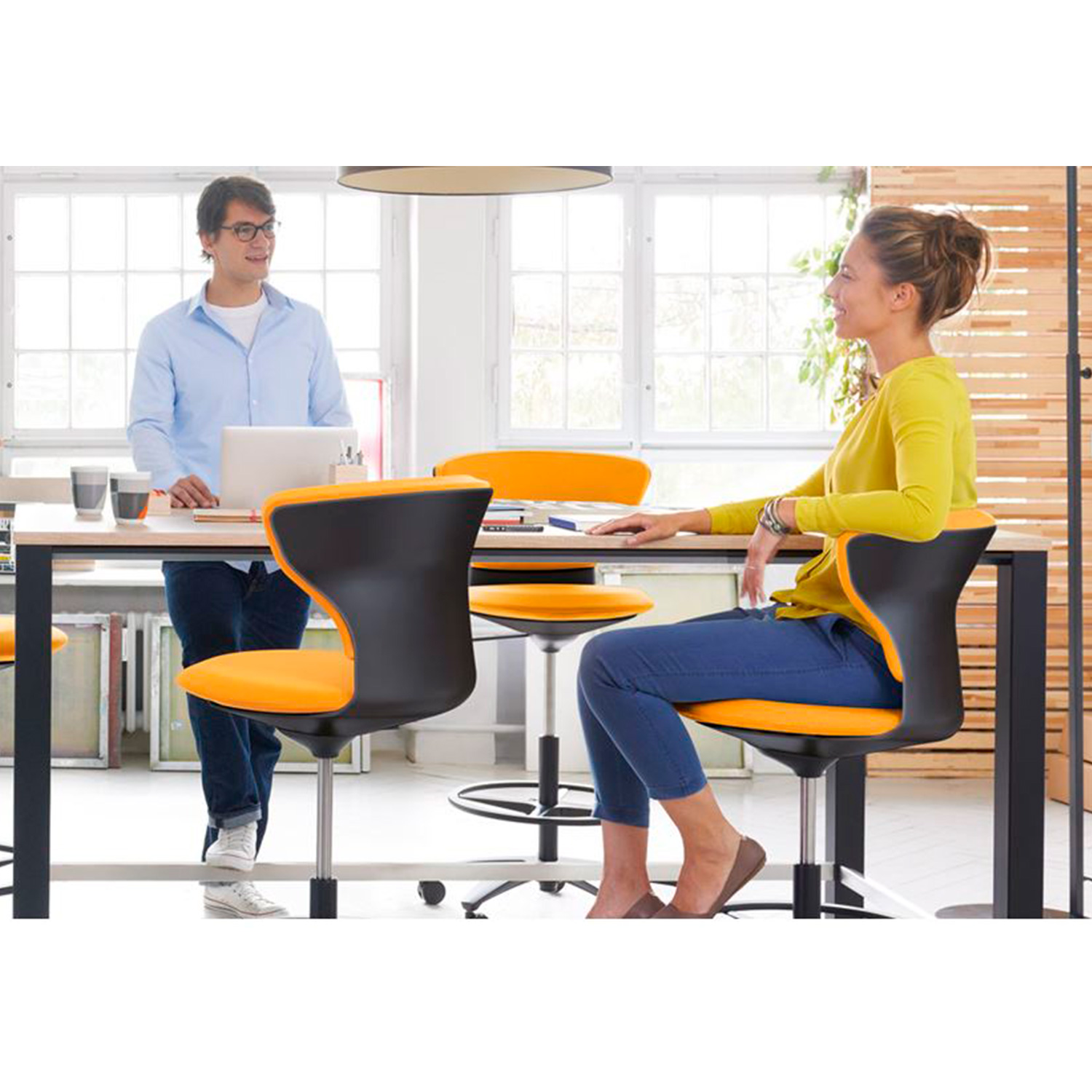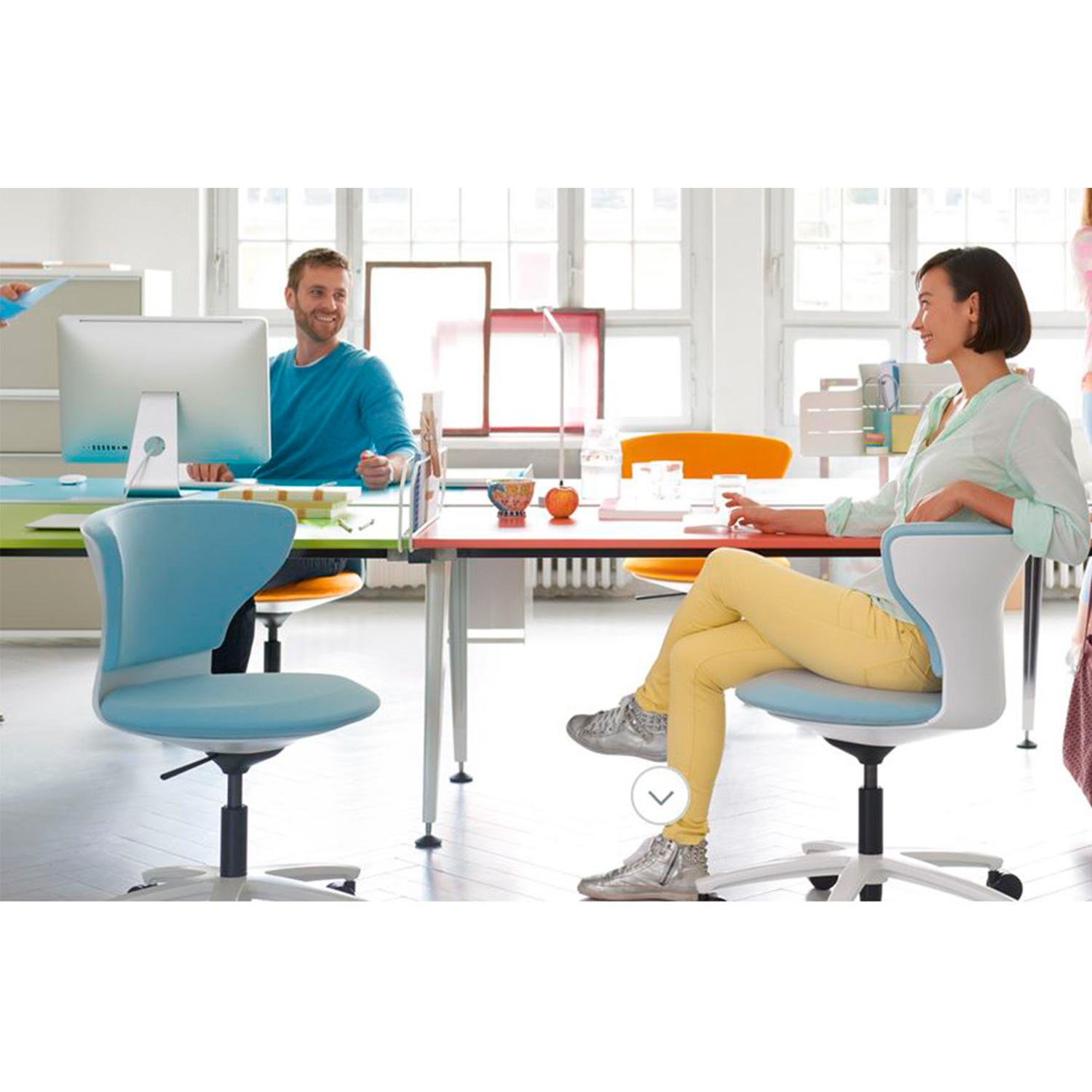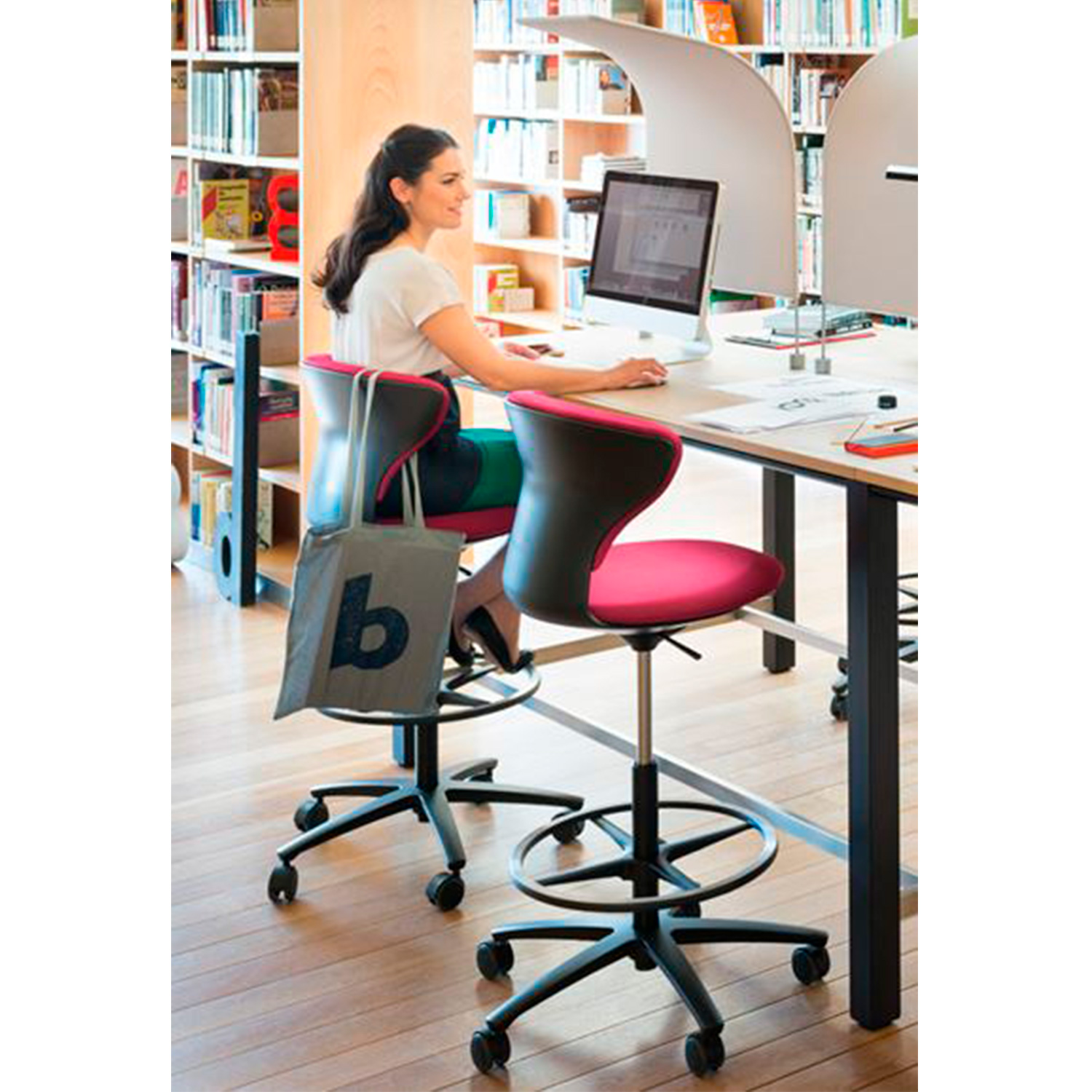 Respaldo con contorno de carcasa que lo rodea fluidamente. Transmite una sensación dinámica y favorece el cambio de posturas para las posiciones de asiento giradas lateralmente