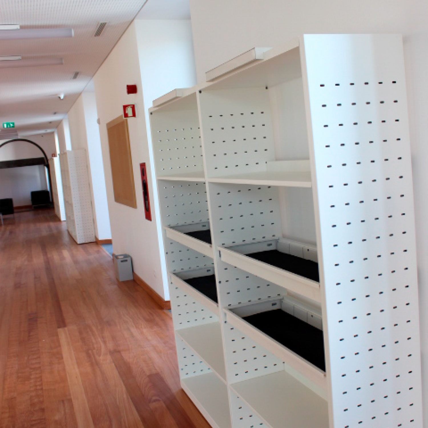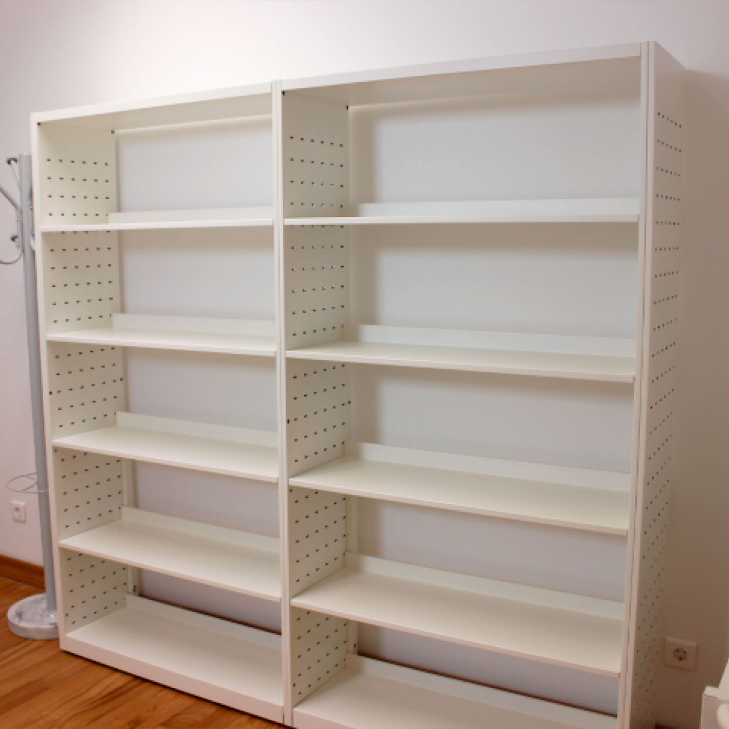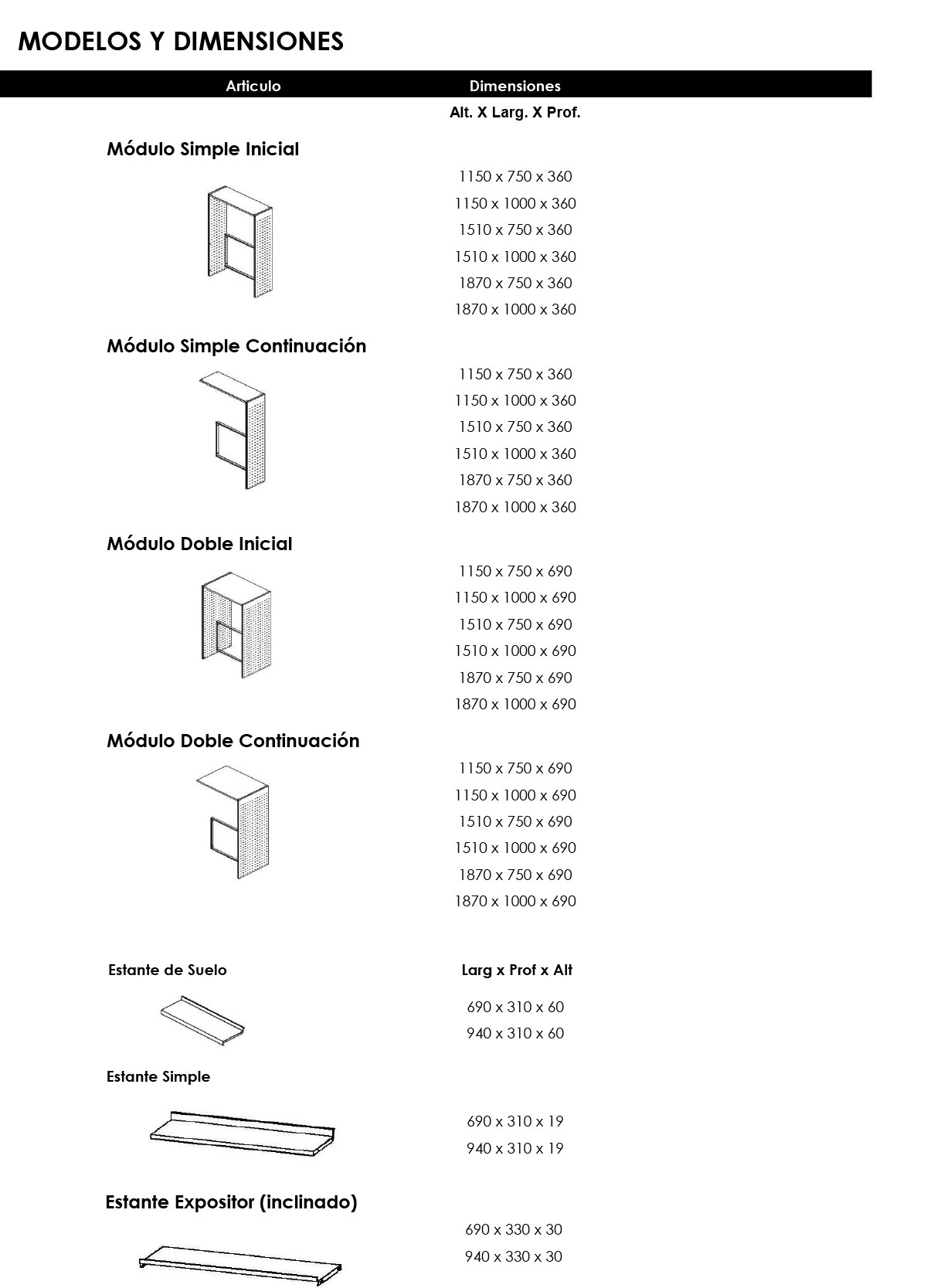 - Estantes en chapa de 0,8 mm con pliegue trasero y con refuerzo
