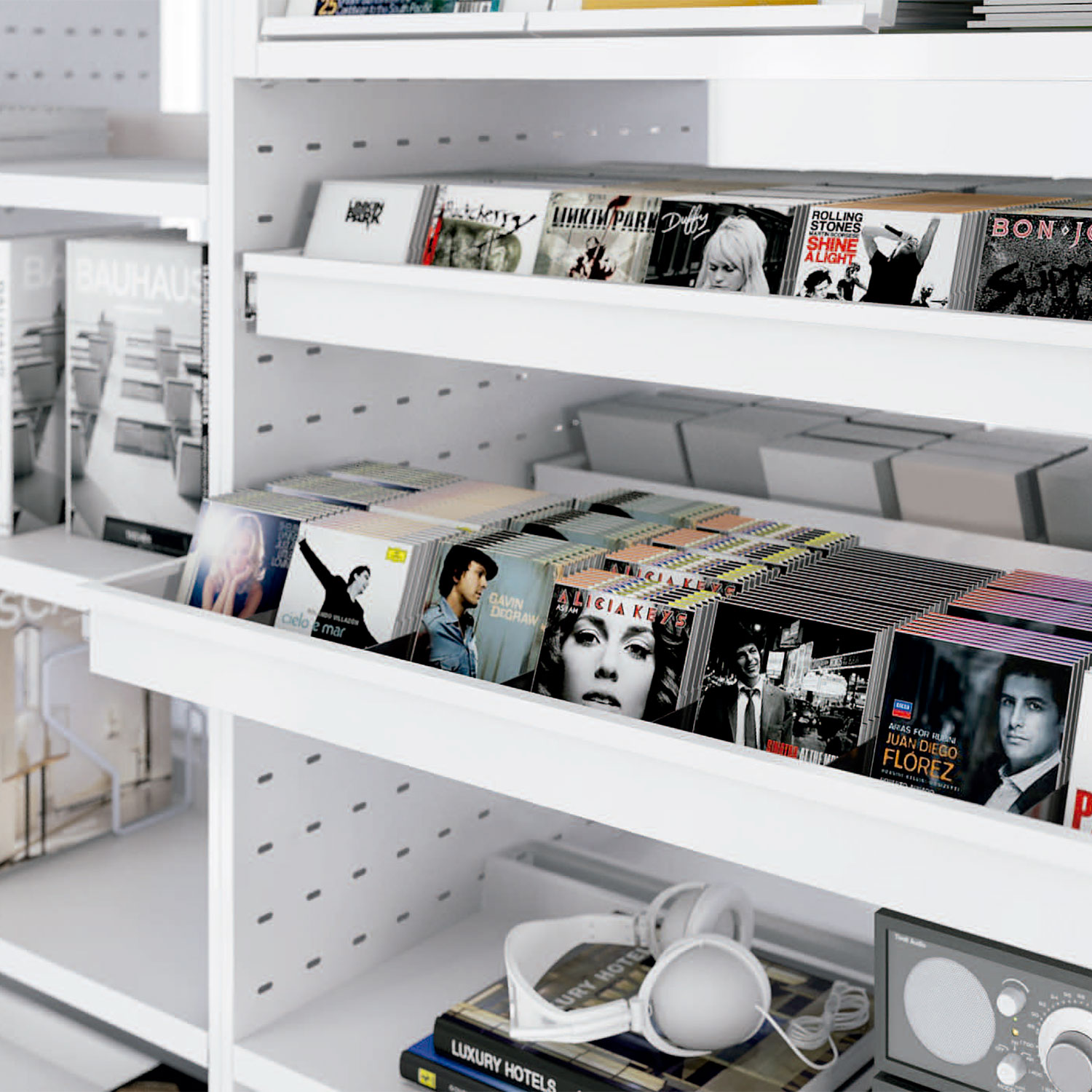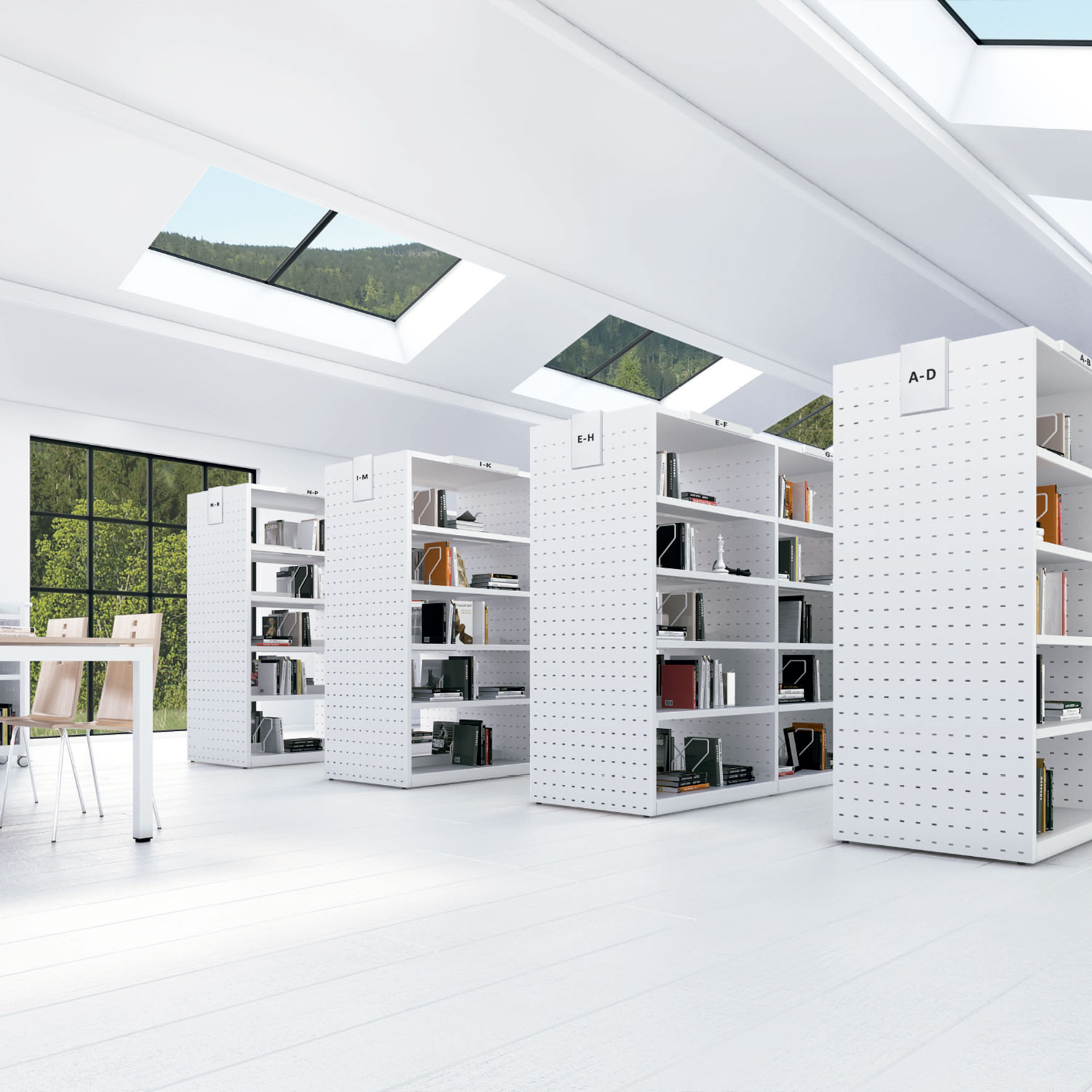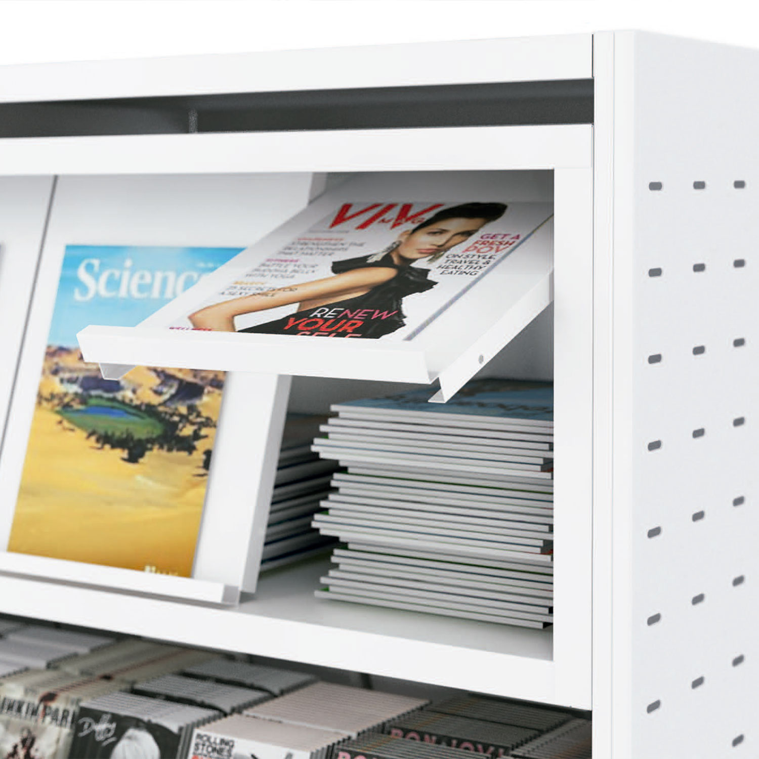 - Estantes en chapa de 0,8 mm con pliegue trasero y con refuerzo