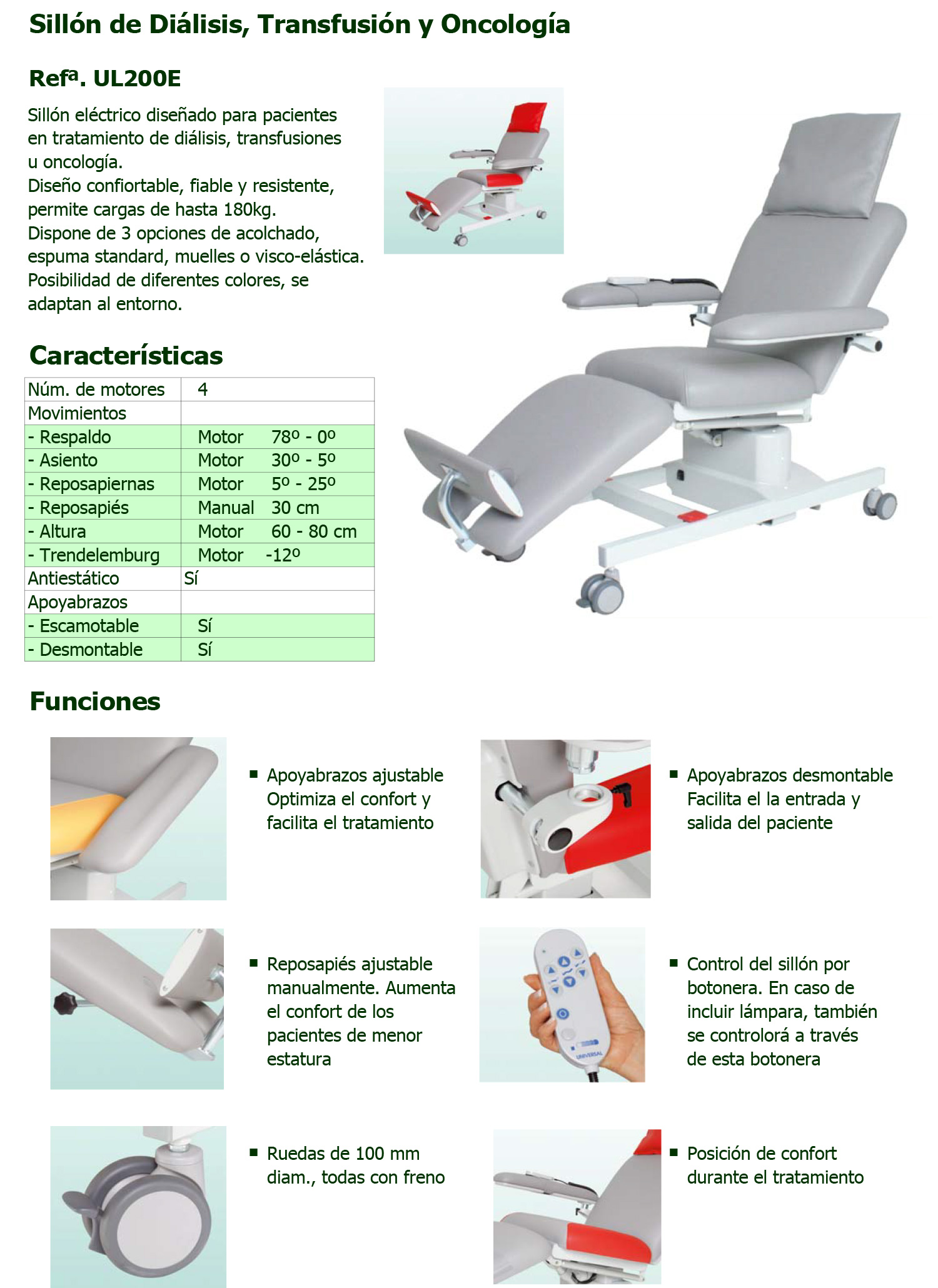 Sillón de hemodiálisis y quimioterapia UL200E