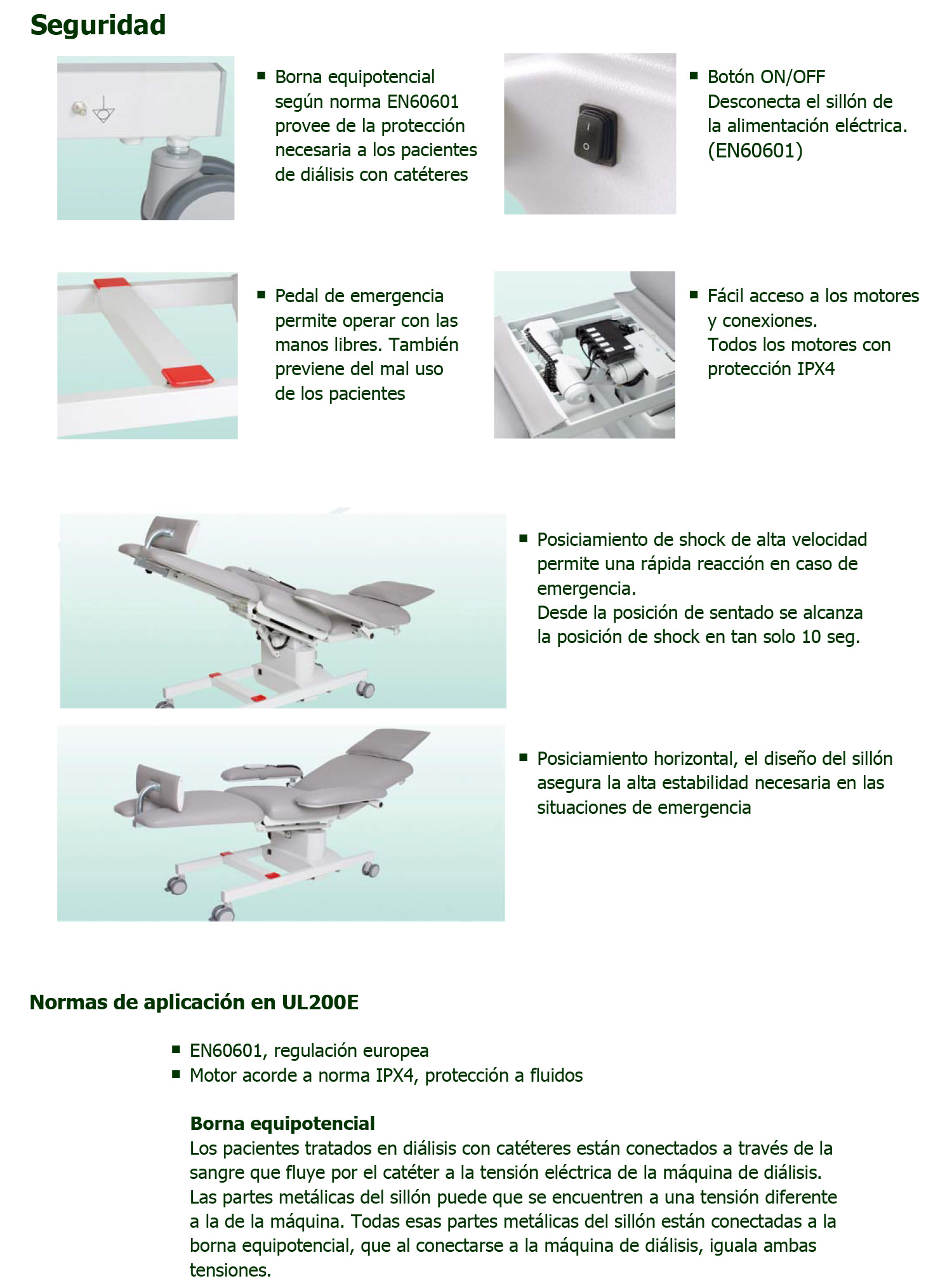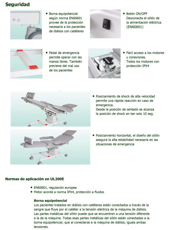 | UL200E | Acero cromado con tapizado sanitario ignífugo, antimicótoco y antibacteriano |