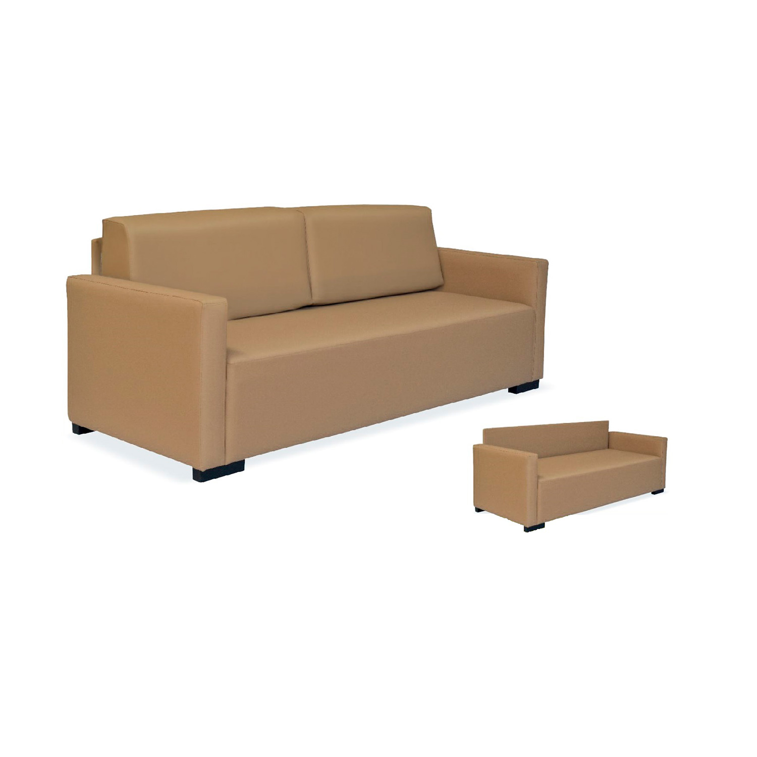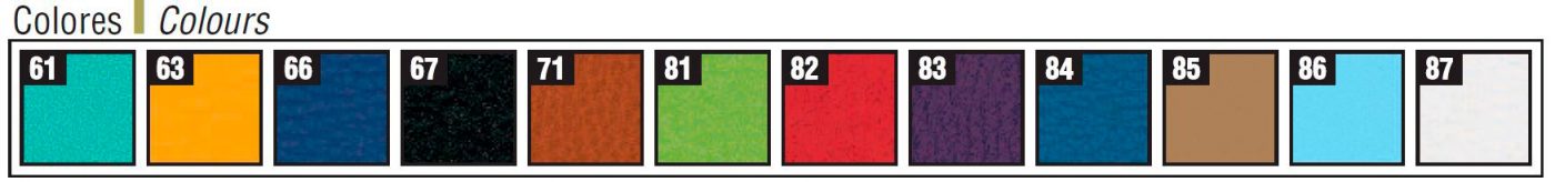 Tapizado en tela vinílica ignífuga M-2 con protección antimicrobiana, antibacteriana y antimicótica, alta resistencia a la abrasión, resistente a la orina, sangre, transpiración y saliva humana, rayos UV y al frio (-23º), superficie resistente a las manchas.